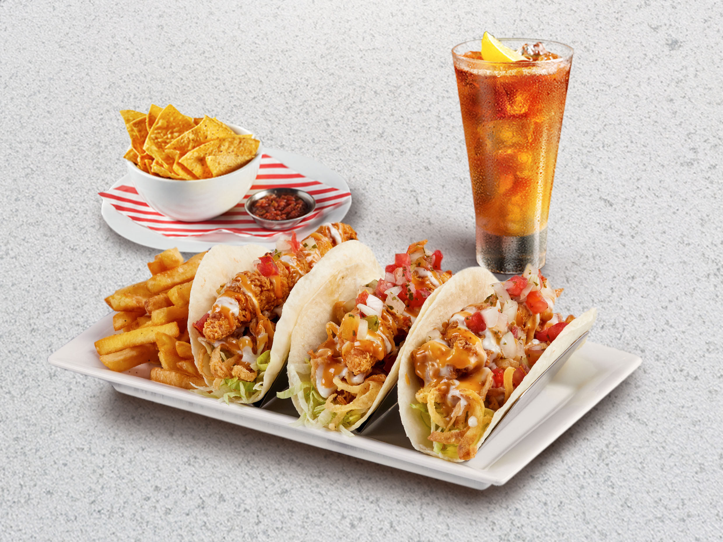 Crispy Chicken Tacos y Bebida