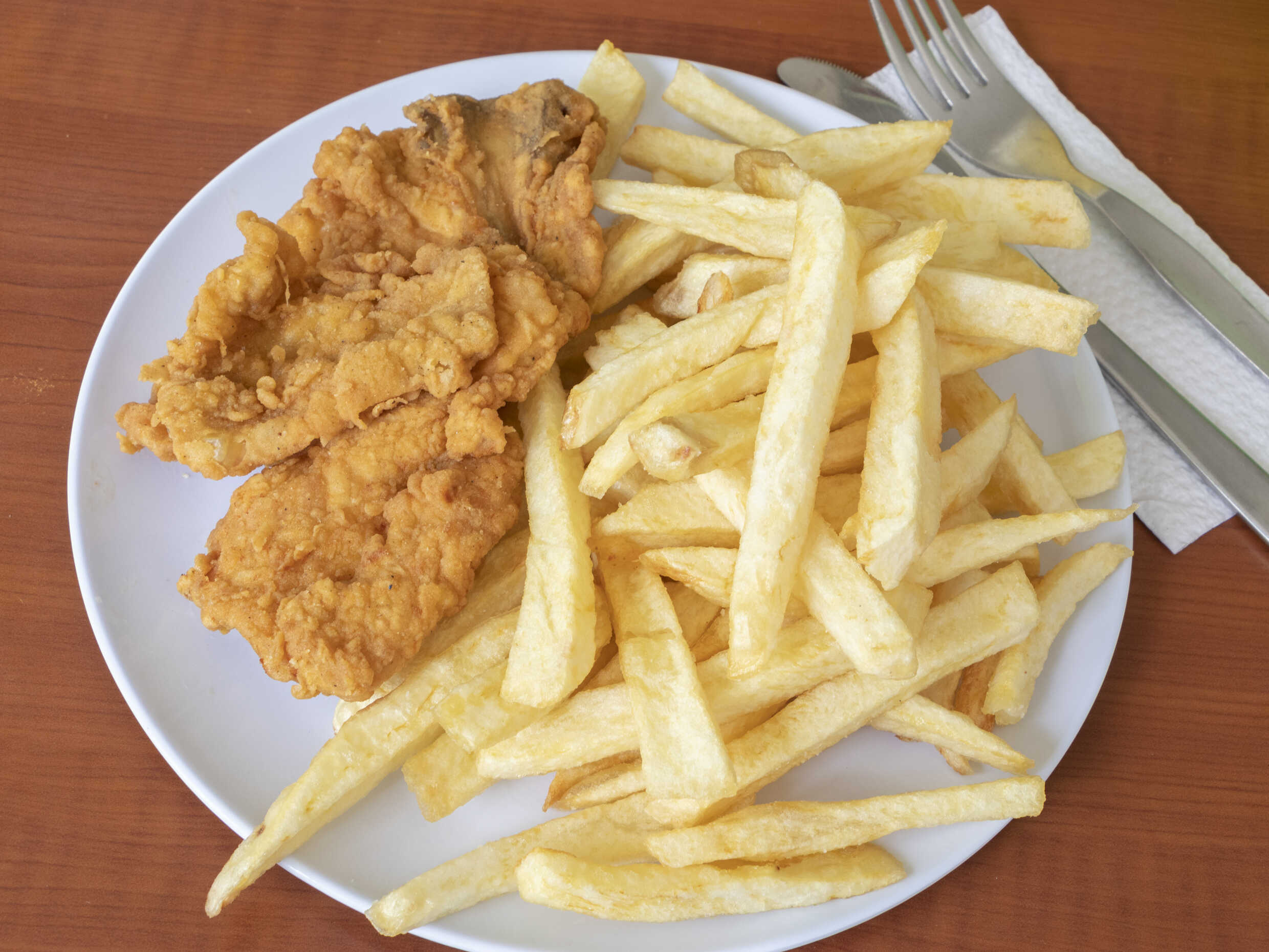 Broaster pecho, papas fritas y cremas a elección.