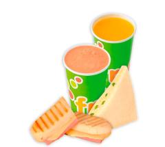 Incluye 1 jugo clásico más 1 panini de jamón y queso.