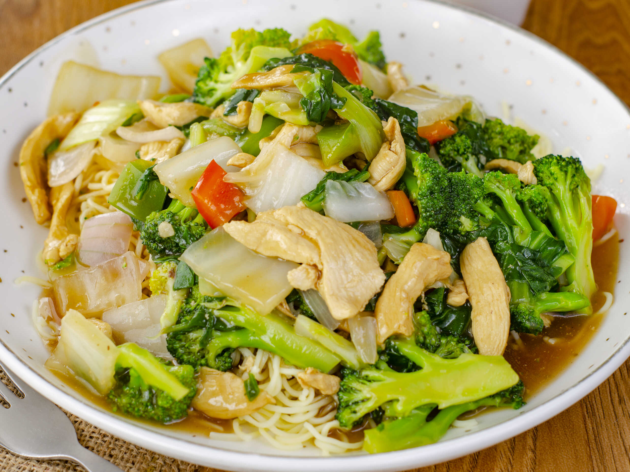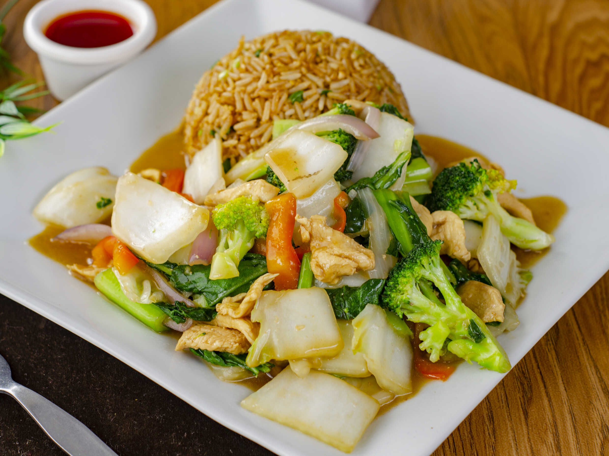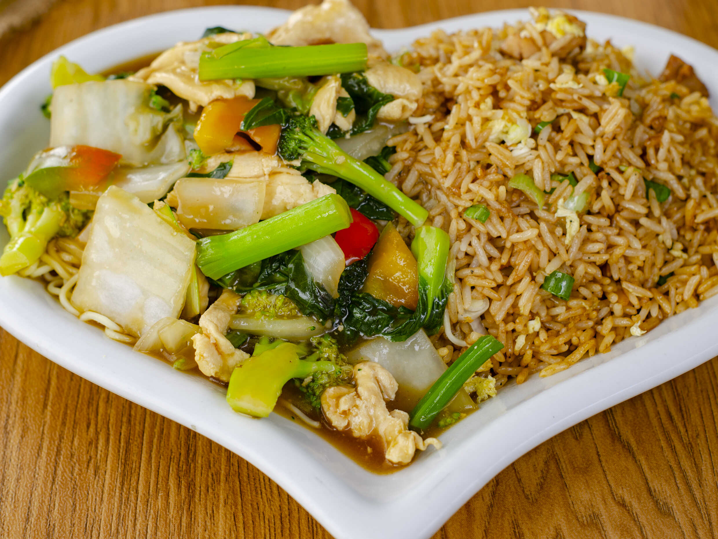 Pollo con Verduras y Chaufa/sopa wanta o wantan fr