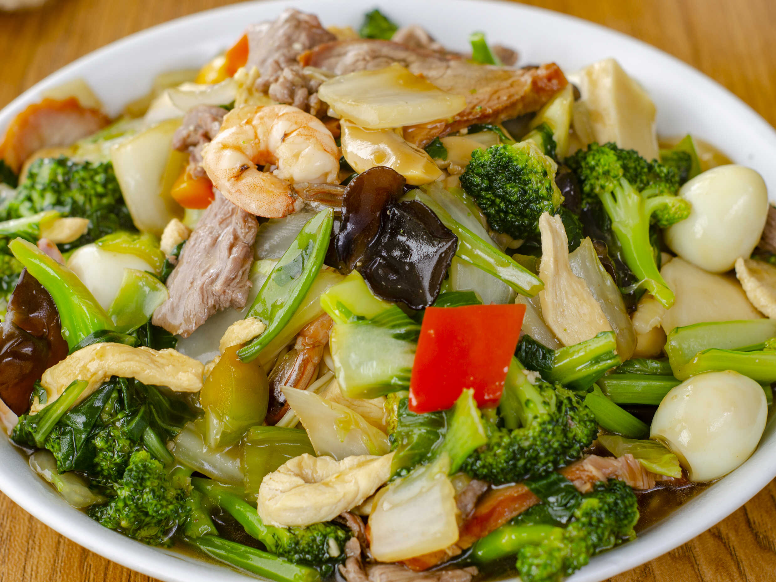 Pollo, chancho, carne, langostino, huevito codorniz, champiñones...