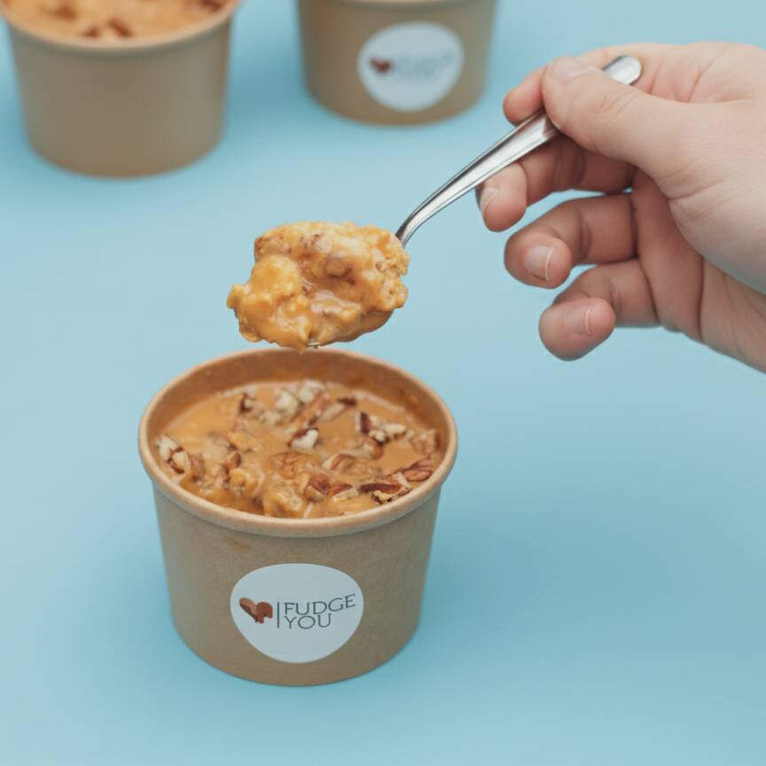 Bizcocho de vainilla, manjar de lúcuma y pecanas. 8 onzas.