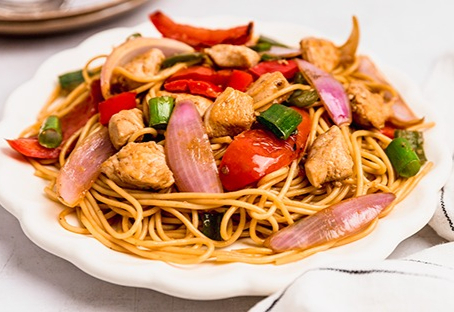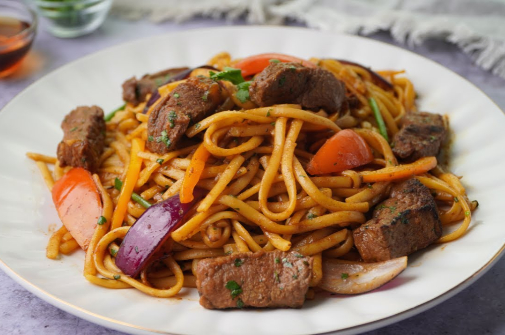 Pasta salteada al estilo oriental con lomo de res, cebolla, tomate, pimentón y salsa de soya, llena de sabor y frescura.