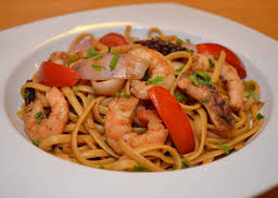 Pasta salteada con camarones, calamares y mejillones en salsa marinera cremosa.