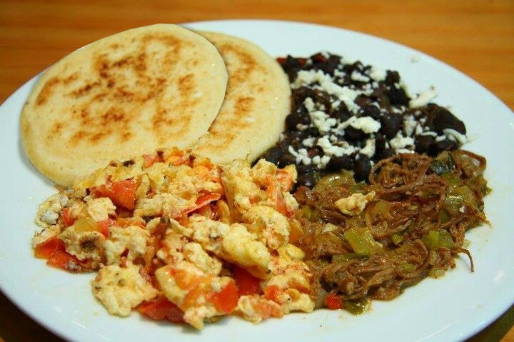 Carne mechada, caraota, arroz, plátano, queso, palta, huevo sin opciones.