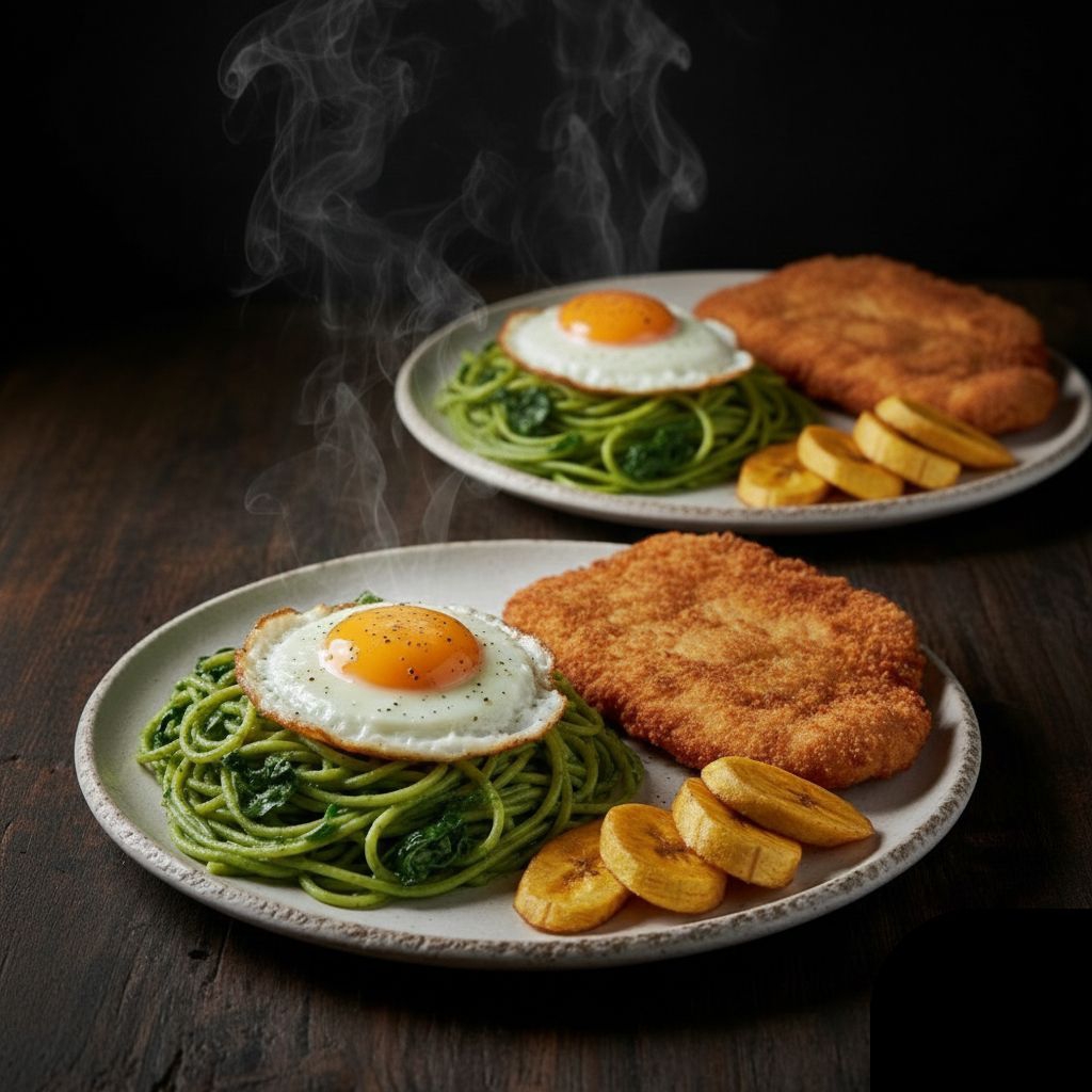 Especial, Tallarín verde con milanesa a lo pobre hecho en casa.