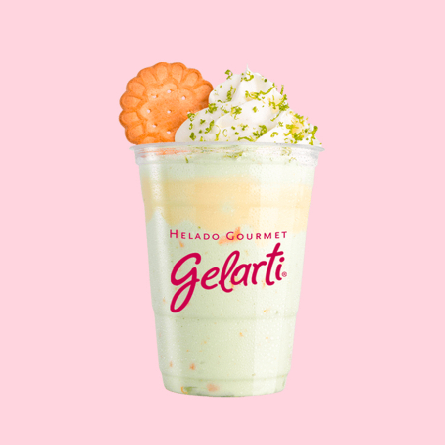 Combinamos helado de delicia de limón, leche deslactosada, decorado con leche condensada, limón rayado, chantilly y una galleta margarita.