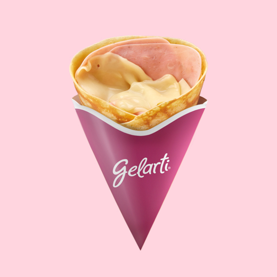 Crepe relleno con jamón inglés y queso gouda.