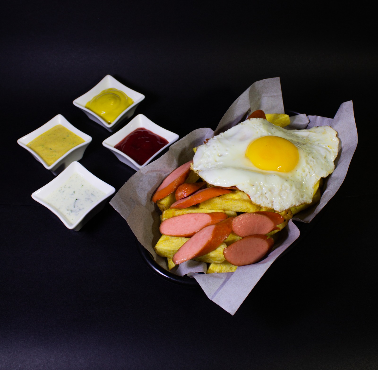 Salchipapa con Huevo