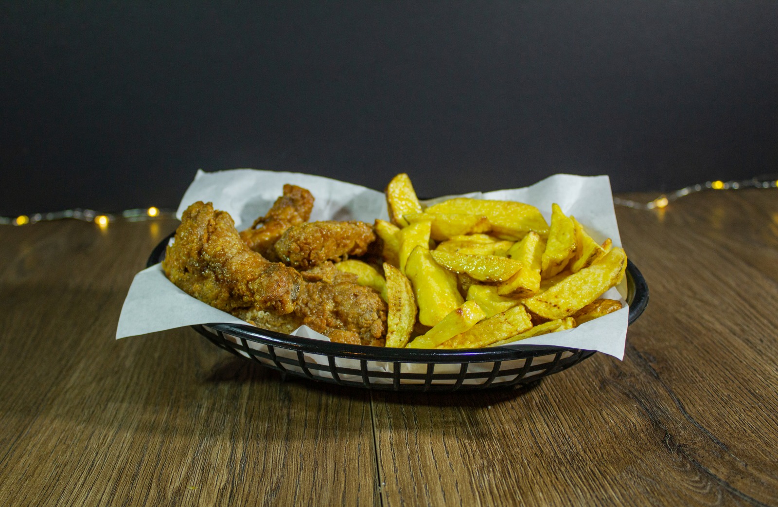 6 Unidades de alitas (salsa dulce) más papas fritas.