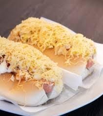 Papas fritas, hot dog, frankfurt pollo en trozos, queso fundido, huevo.