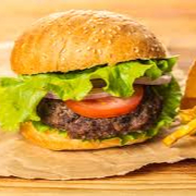 Hamburguesa de carne artesanal o filete de pollo, lechuga, tomate, papas fritas o al hilo.