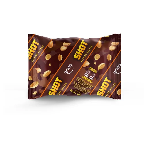 Bombón con crema helada de chocolate con crema americana, corazón de dulce de leche repostero, cubierto con baño de chocolate de repostería y crocante de maní, 8 pz.