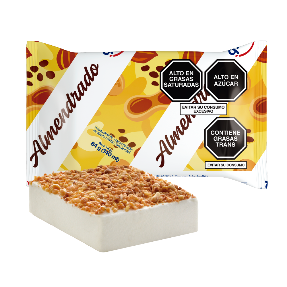Helado almendrado de crema americana con crocante de maní, 8 porciones.