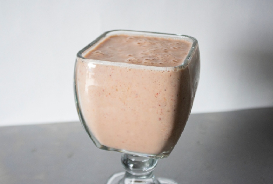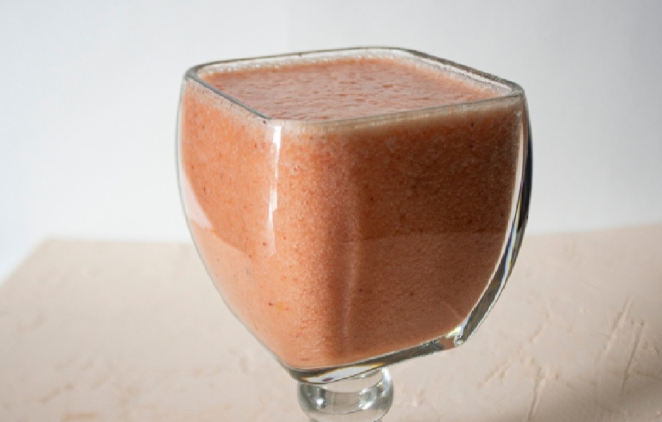 Jugo con papaya, piña, fresa, plátano, miel de abeja, algarrobina, leche y huevo, 500 ml