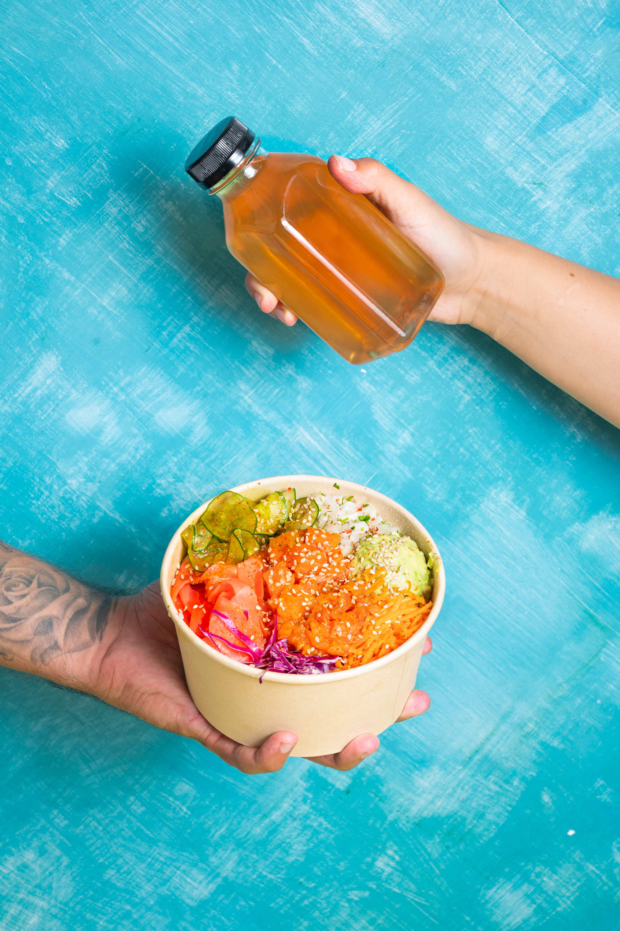 Arma tu poké con tus ingredientes favoritos! Escoge tu base, toppings, hasta 3 proteinas, add ons y salsas (32oz)