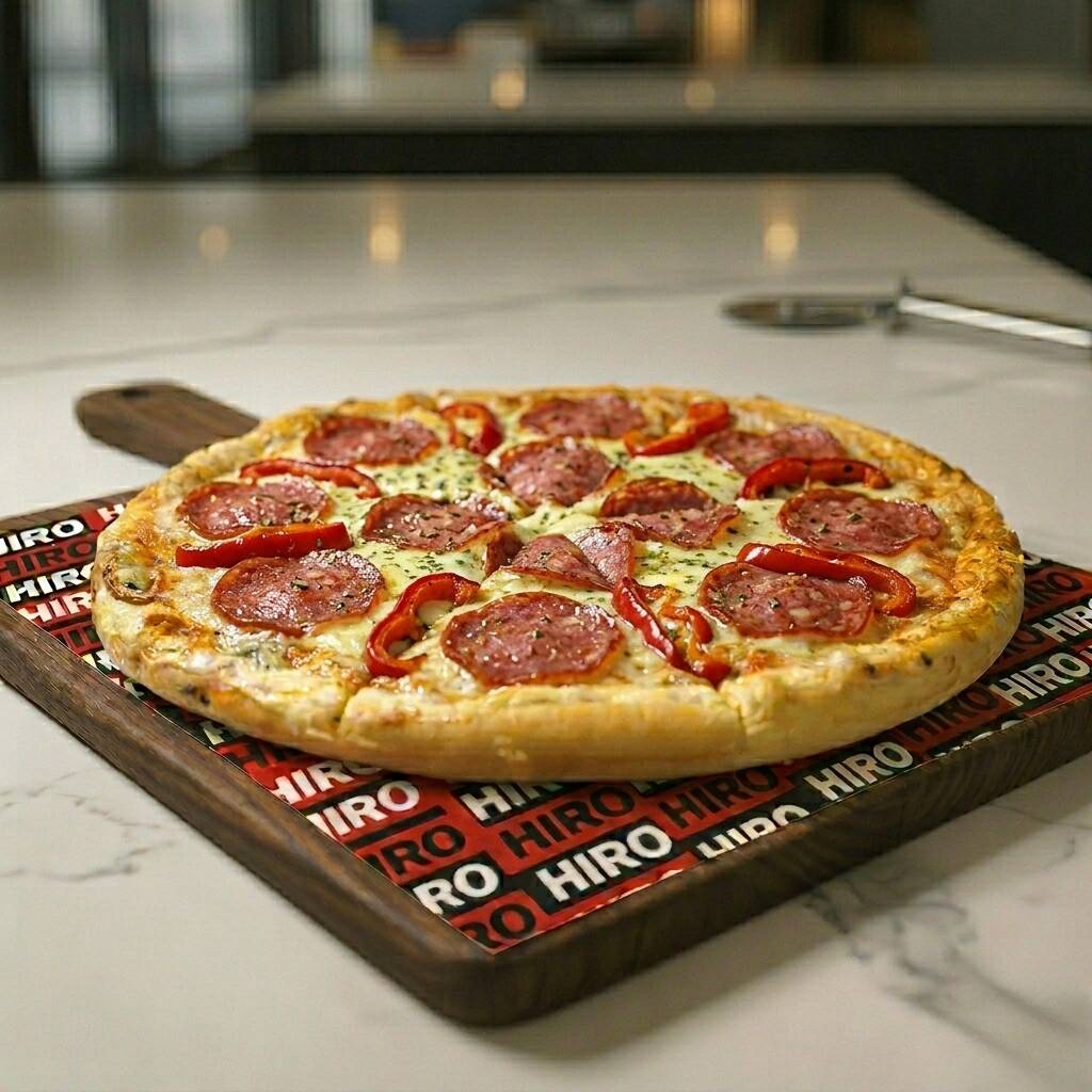 Queso mozzarella, jamón inglés, chorizo, pepperoni, carne pizzera y salchicha parrillera.