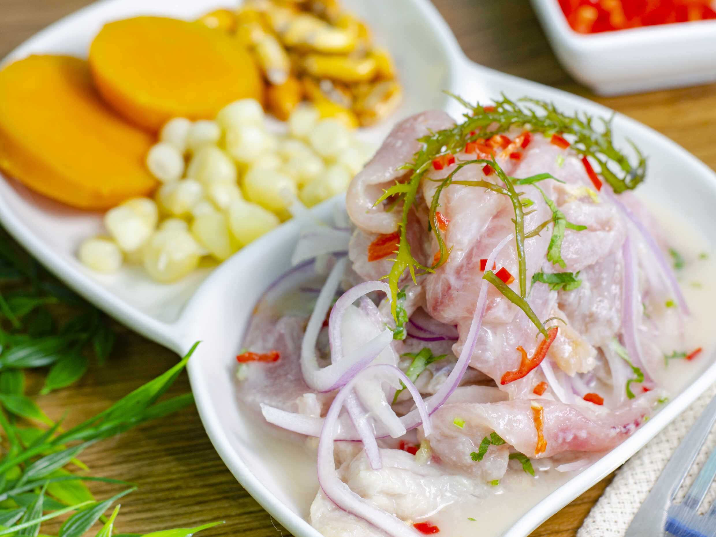 Ceviche de Pescado + Chicharrón de Pota + Bebida