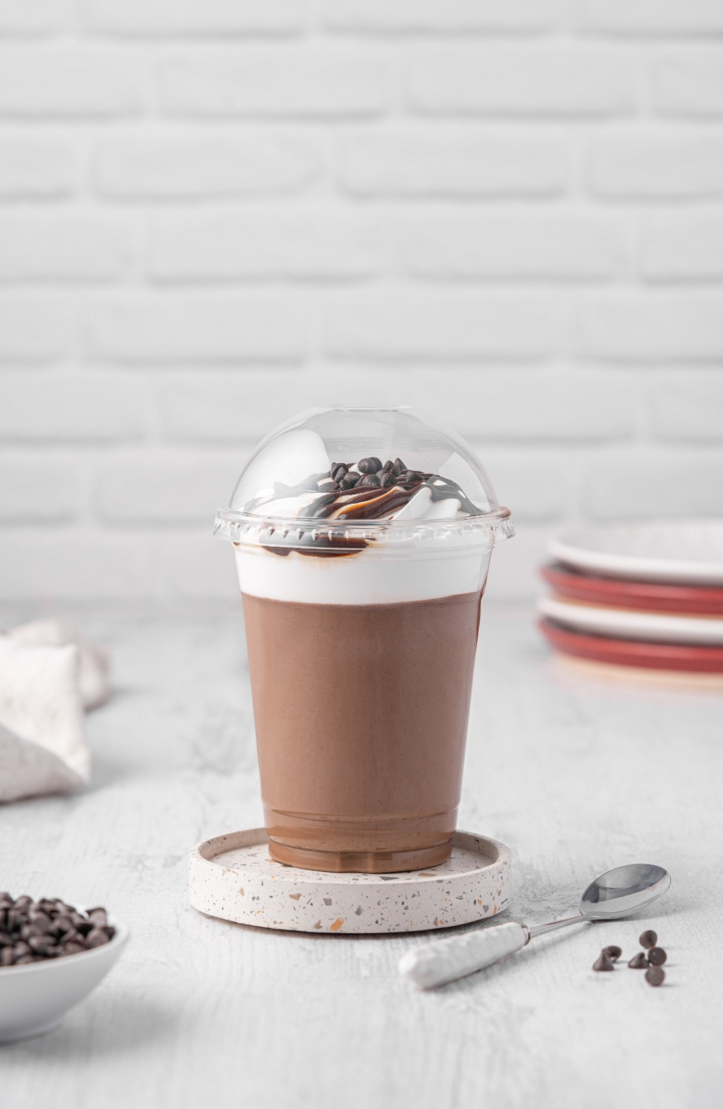 Pudin de chocolate de 12 Oz con chantigie, chispas de chocolate y fudge.