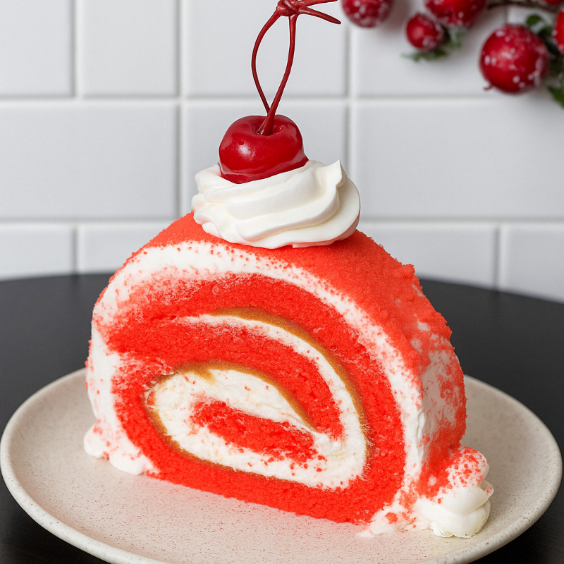 Bizcocho de red velvet con relleno de queso crema con chantigie acompañado de manjar blanco y cubierto en chantigie de vainilla