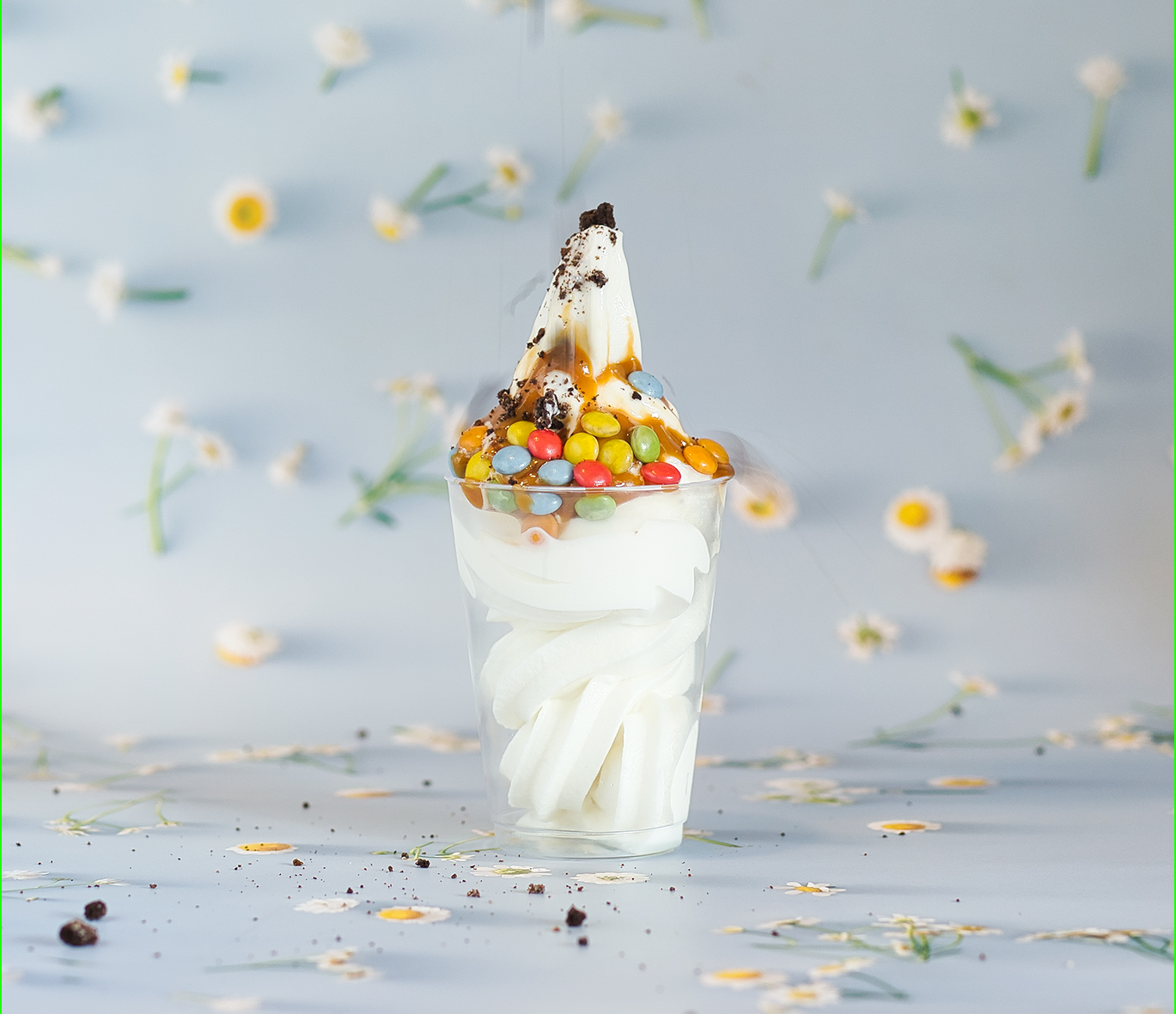 (Más Helado, más Sabor, elige tu mermelada de tu elección y agrégale los toppings, lentejas, chispas de chocolate, gomitas y galleta oreo)