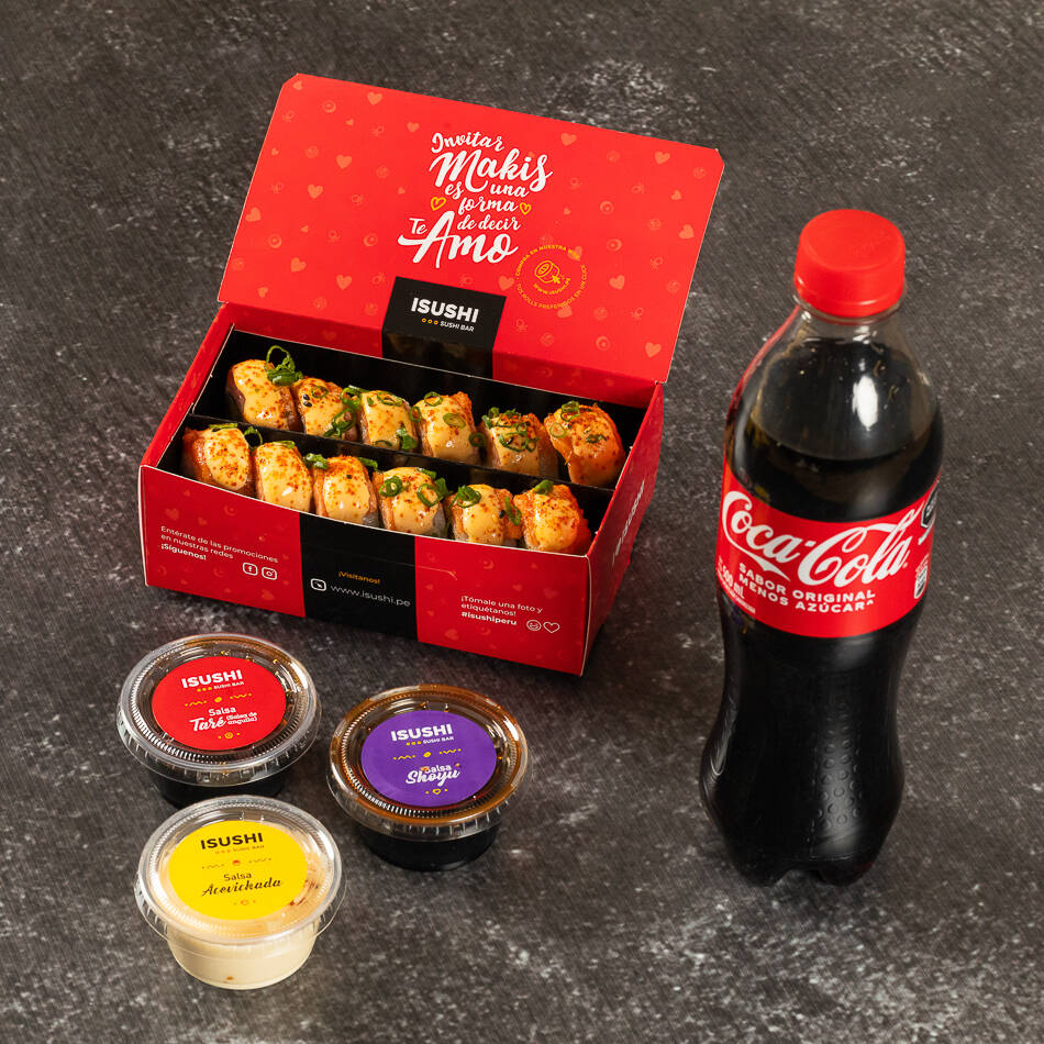 Elige 1 sabor de tus makis favoritos mas pack de salsas y gaseosa personal.