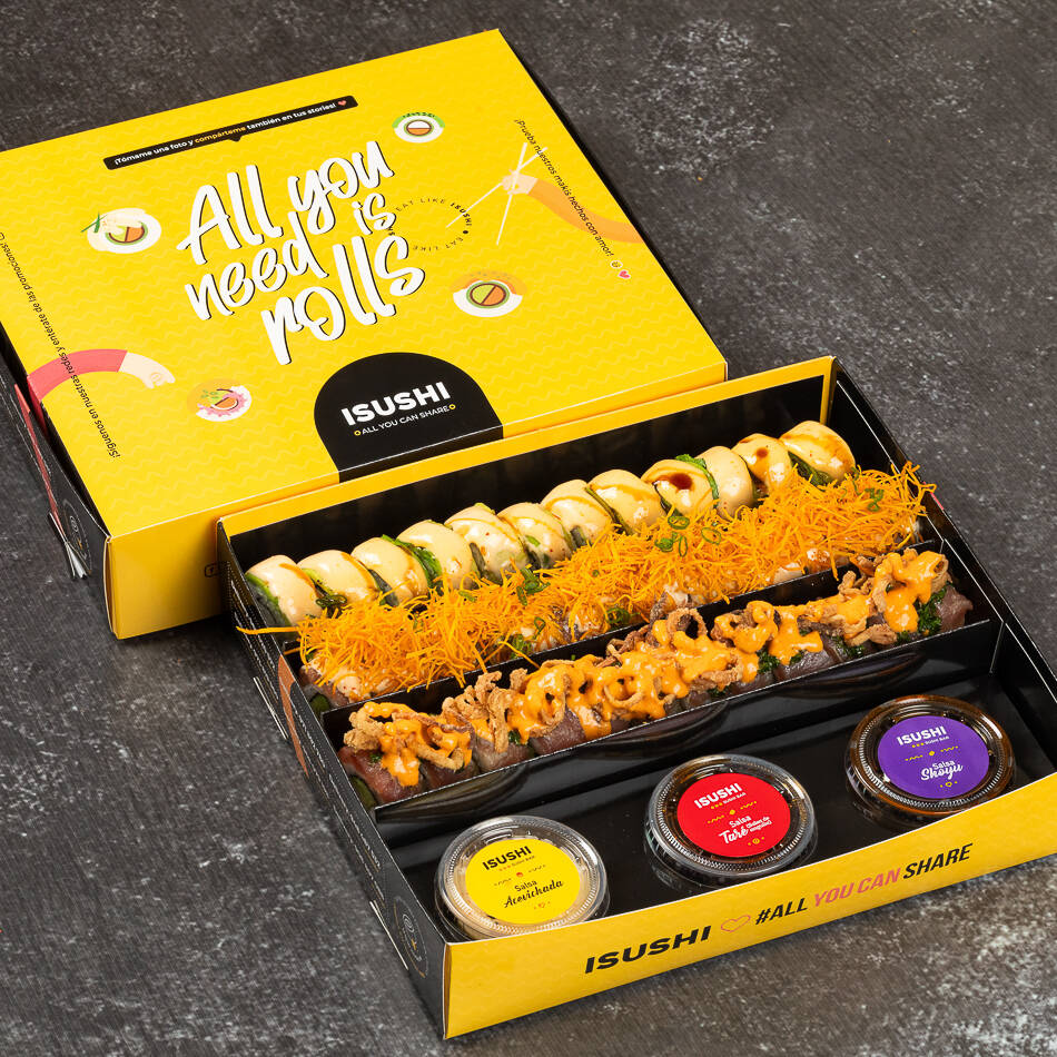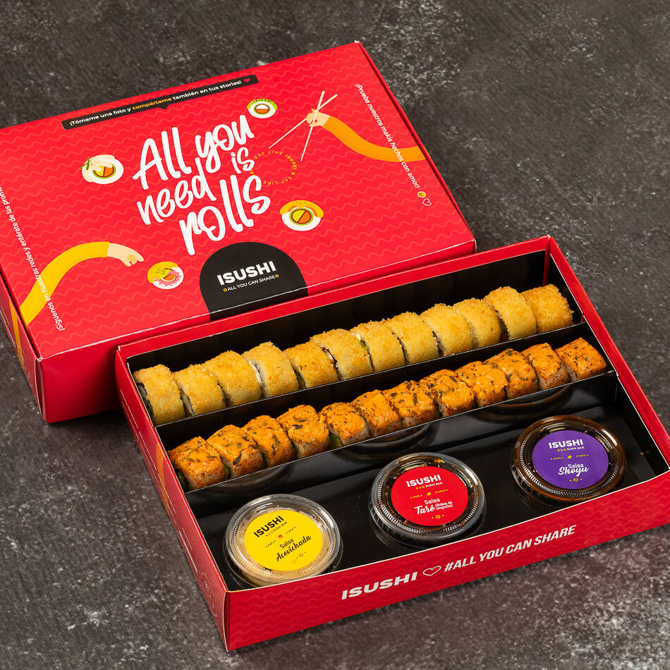 2 tablas de 12 makis acompañado de tu trío de salsas favoritas (acevichado, anguila y shoyu)