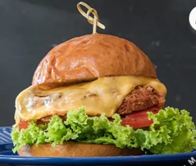 Hamburguesa 200 g, tallarín al pesto, huevo frito y cremas a elección.