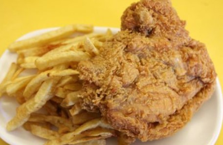 acompañado de papas fritas y arroz