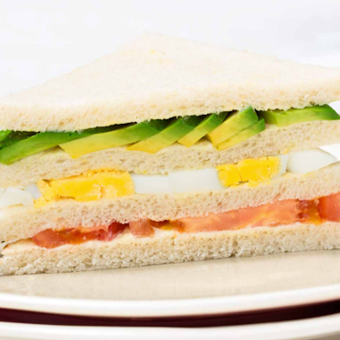 Sándwiches preparados al momento huevo duro, palta y tomate.