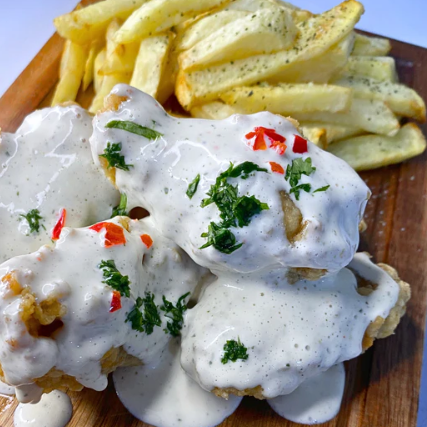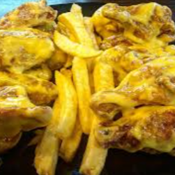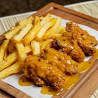 6 unidades de alitas en salsa a elección acompañadas de papas fritas