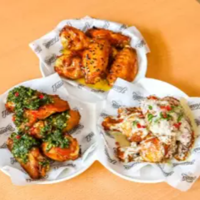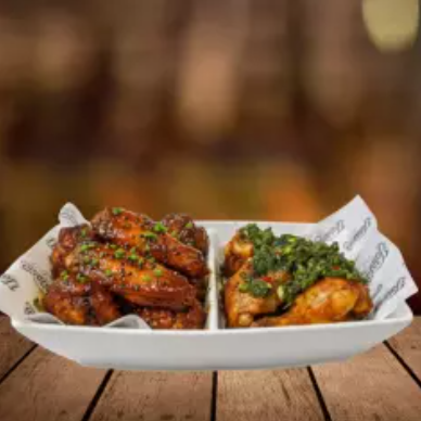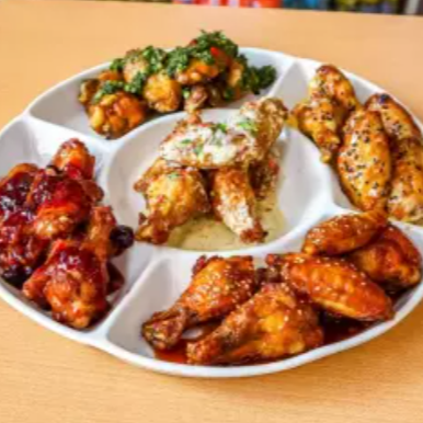Puedes elegir 5 sabores de alitas, acompañado de papas fritas nativas.