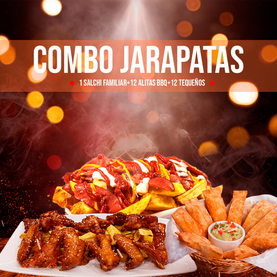El preferido de todos: 1 salchipapa clásica familiar ,12 alitas (1 sabor a elección) y 12 tequeños.
