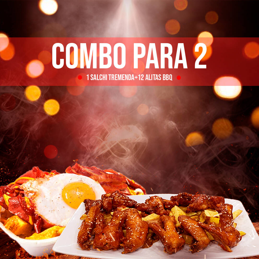 Para 2, 12 Alitas y Salchipapa Tremenda