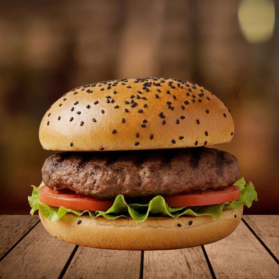 140 gr. De carne molida, en pan brioche acompañado de lechuga y tomate.