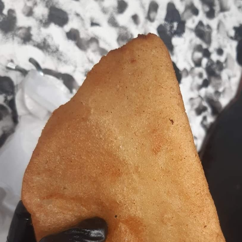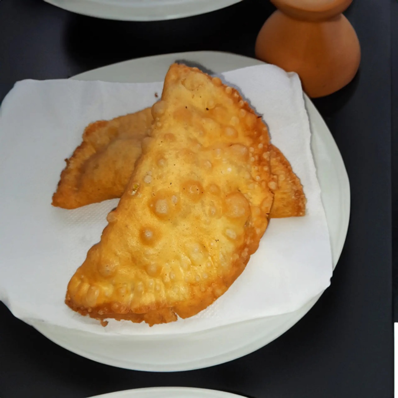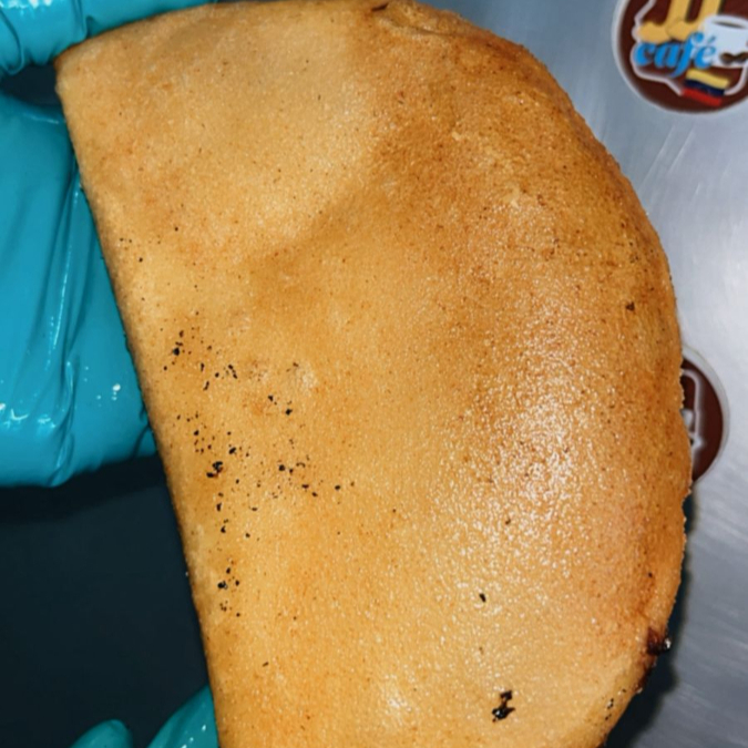 Empanada hecha de maíz amarillo con rico de guiso de pollo.