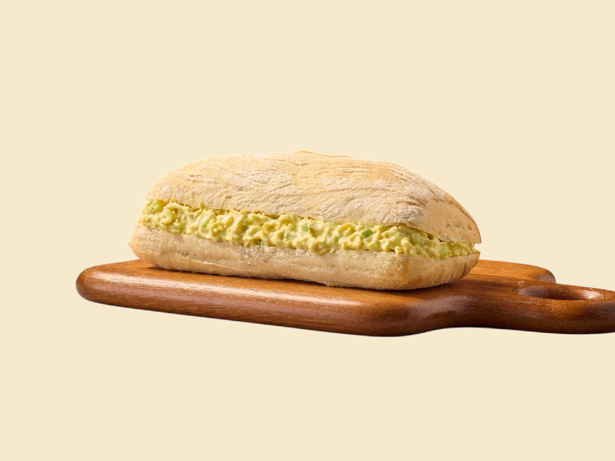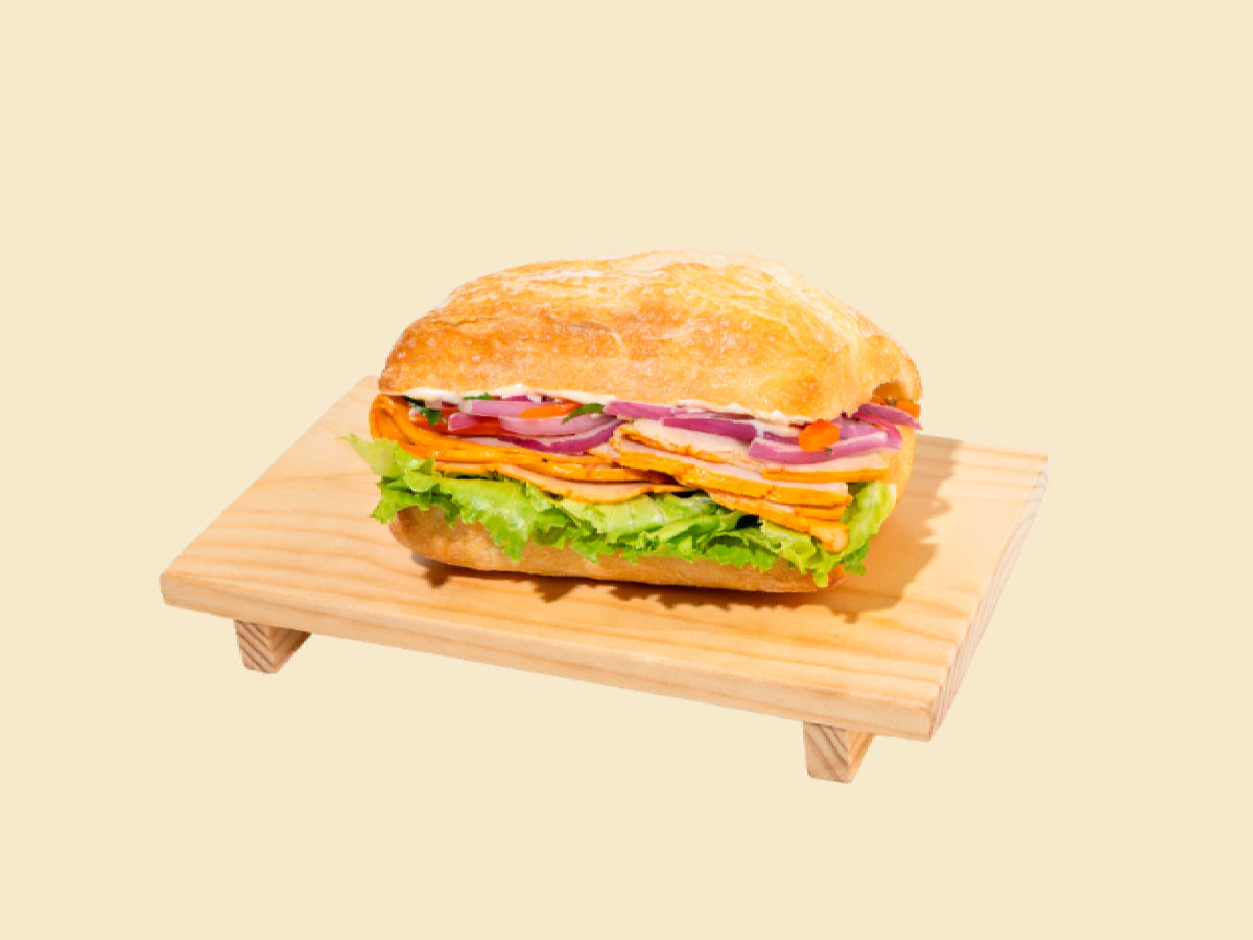 Pan ciabatta, relleno con pollo jugoso, mayonesa cremosa y el toque justo de mostaza.