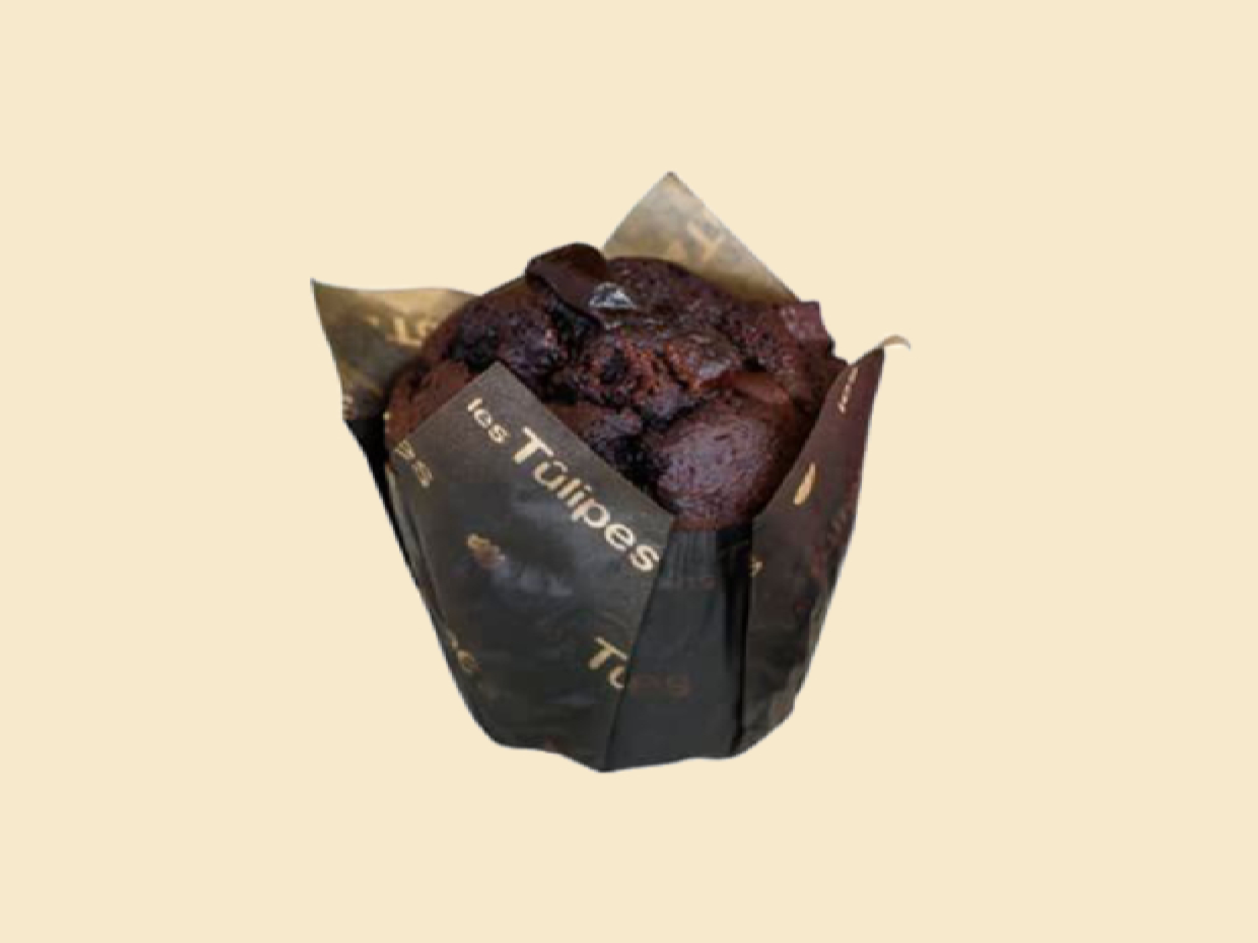 Muffin de chocolate, esponjoso y dulce, con intenso sabor a cacao, ideal para acompañar tu café.