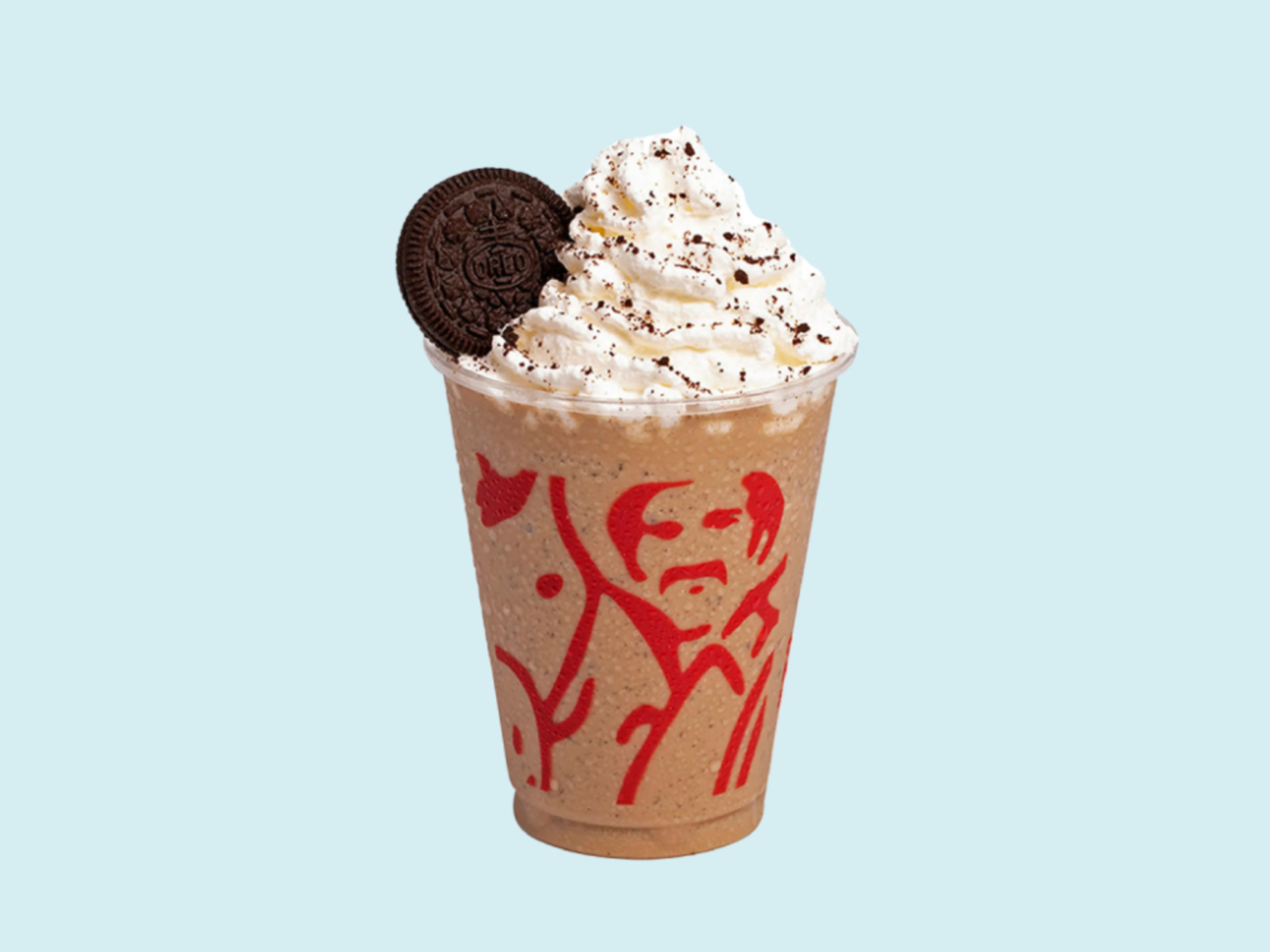 Café premium colombiano, galleta oreo, base láctea, hielo frappeado, decorada con crema chantily.