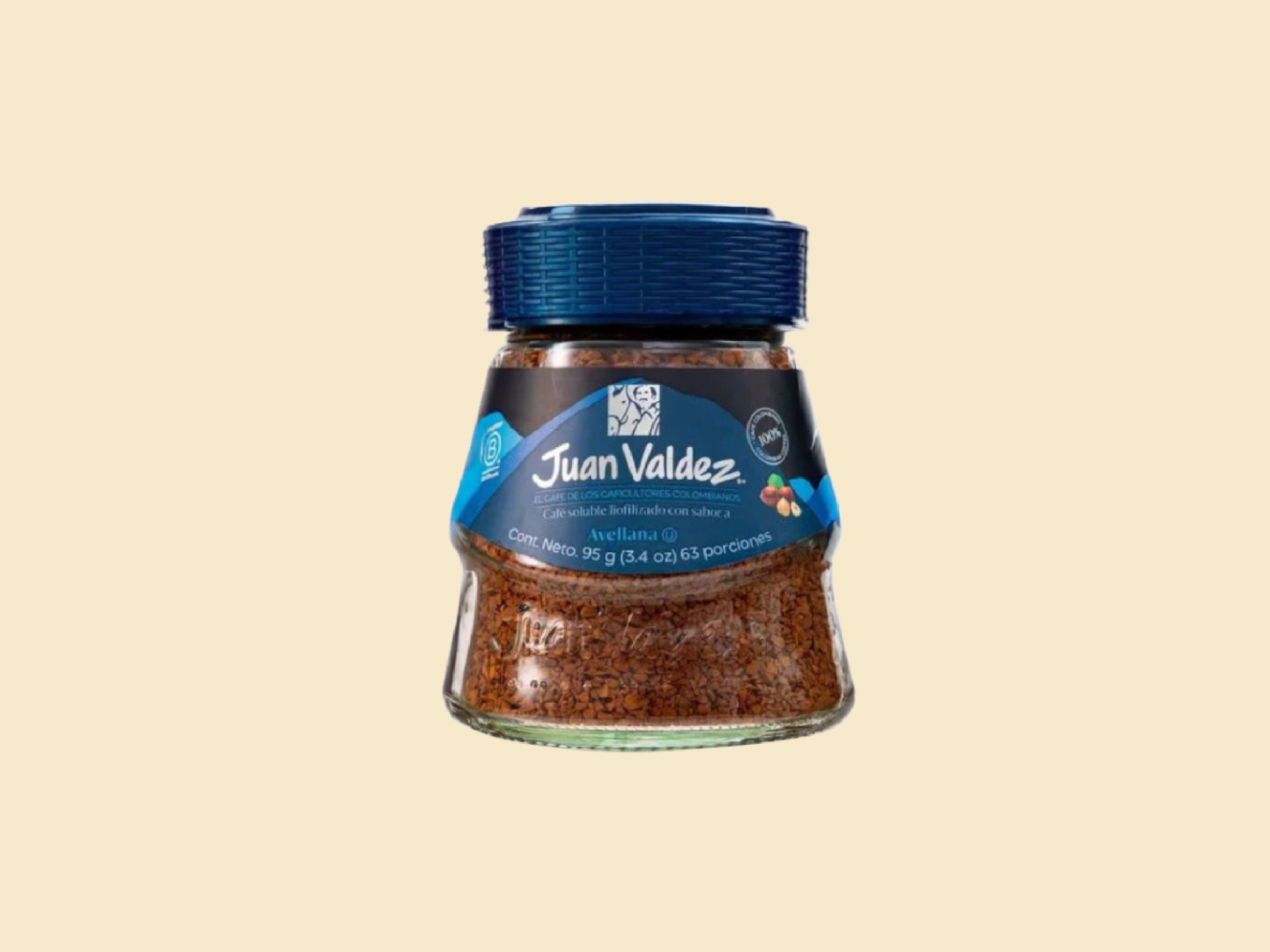 95% café soluble liofilizado con 5% café tostado micromolido con saborizante natural de avellana; rinde 63 tazas aprox.