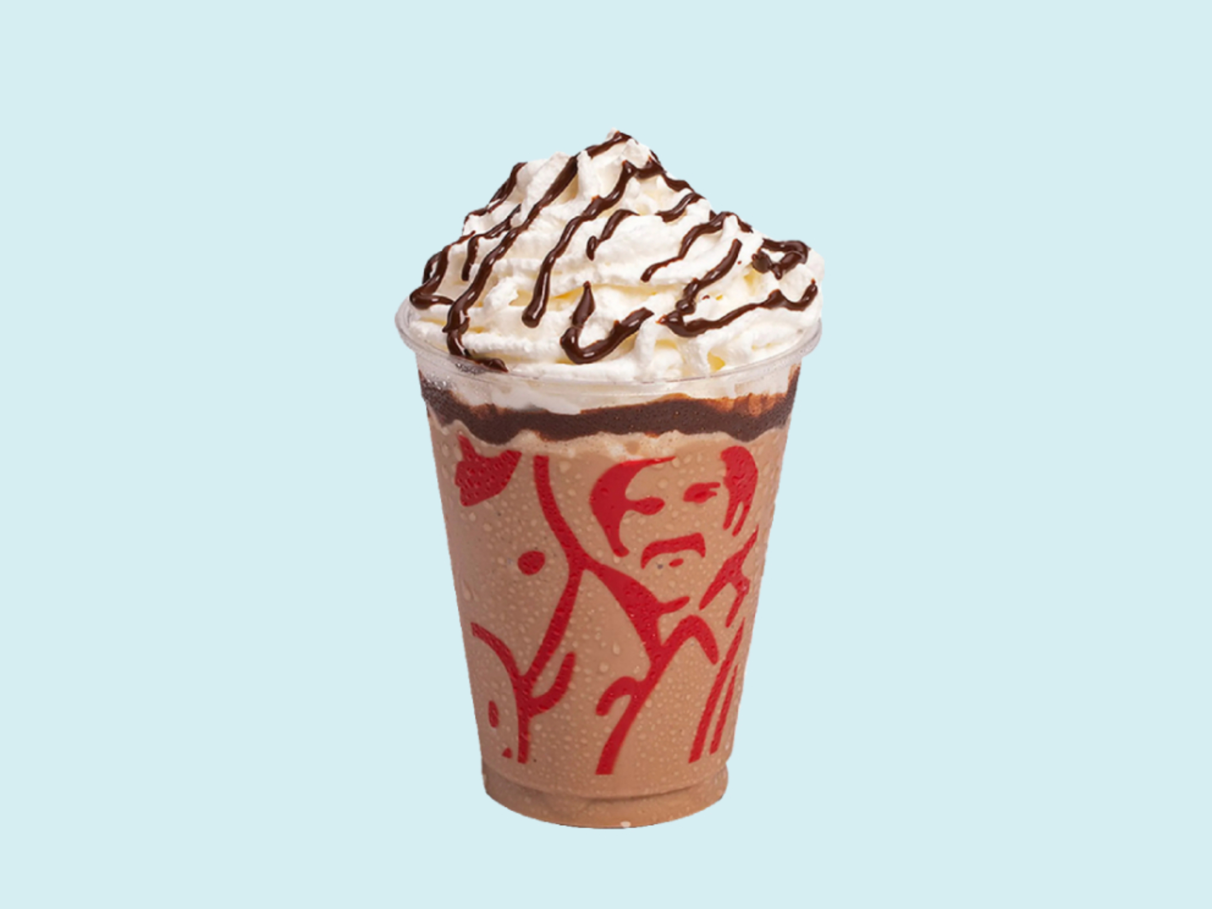 Café premium colombiano con hielo frappeado, mezcla láctea, pulpa de lúcuma, salsa de chocolate y chantilly.