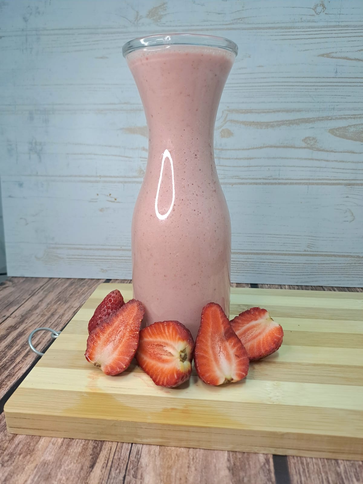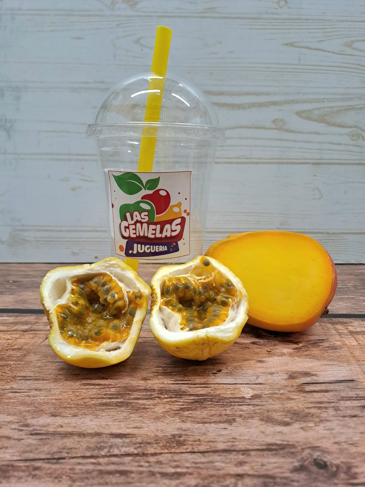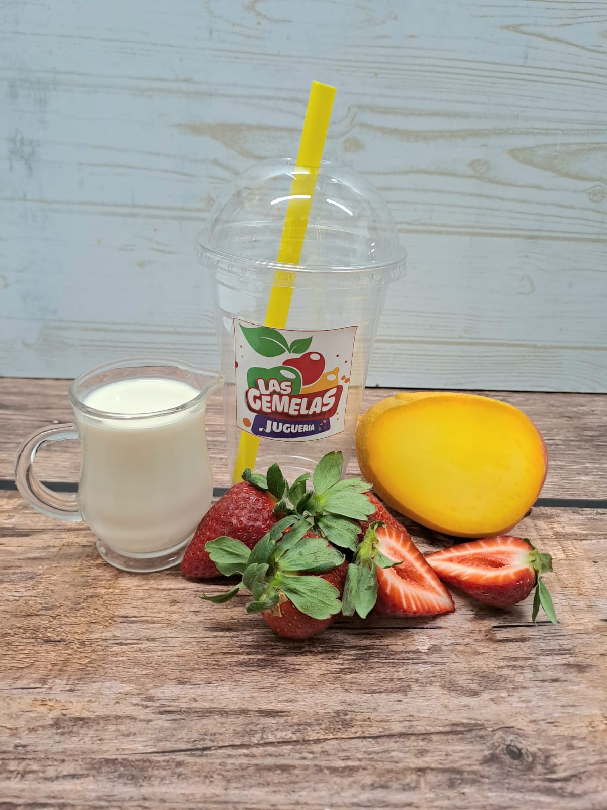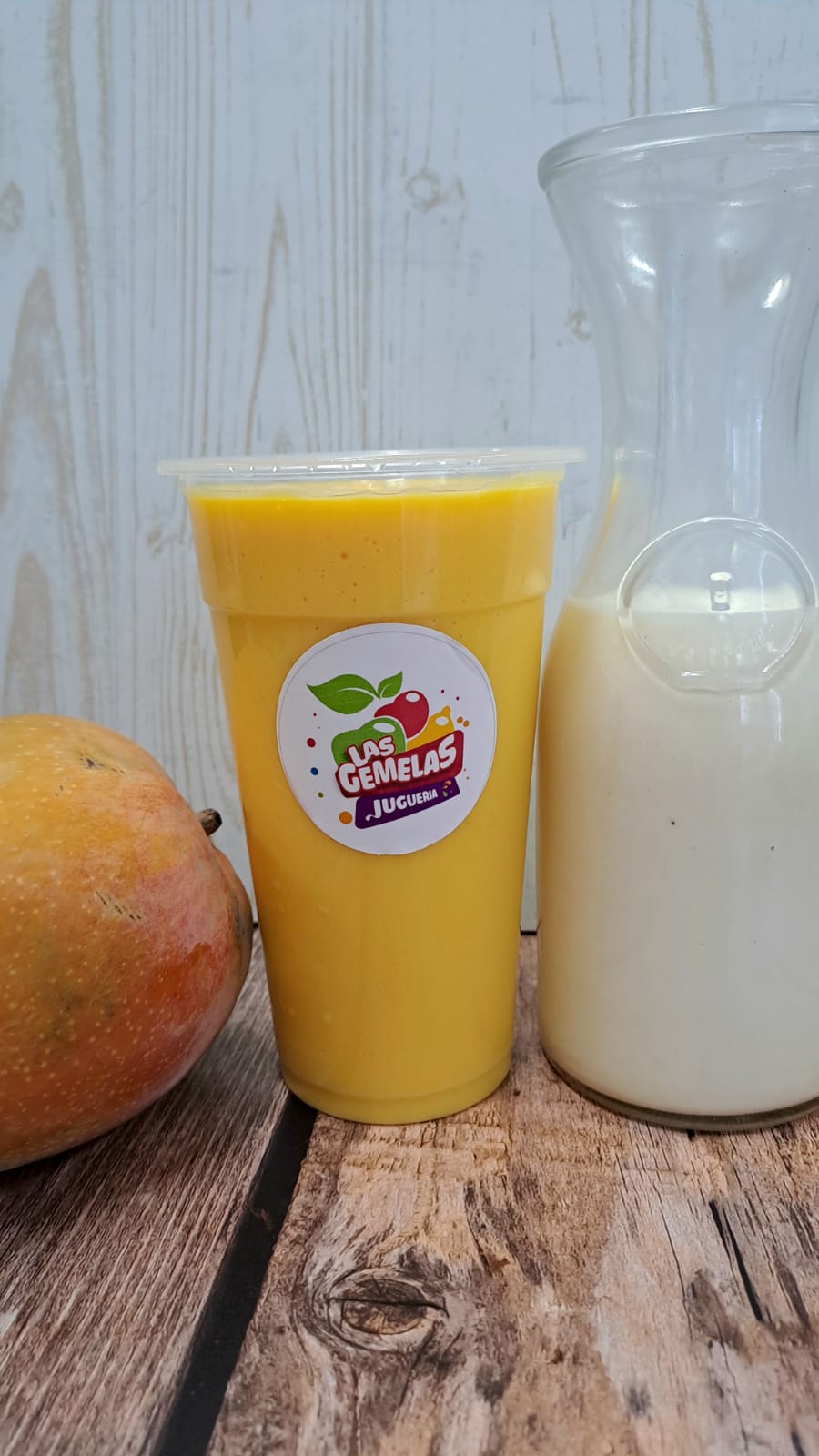 Batido de pulpa de mango y leche fresca con azúcar. Vaso de 21 onz.