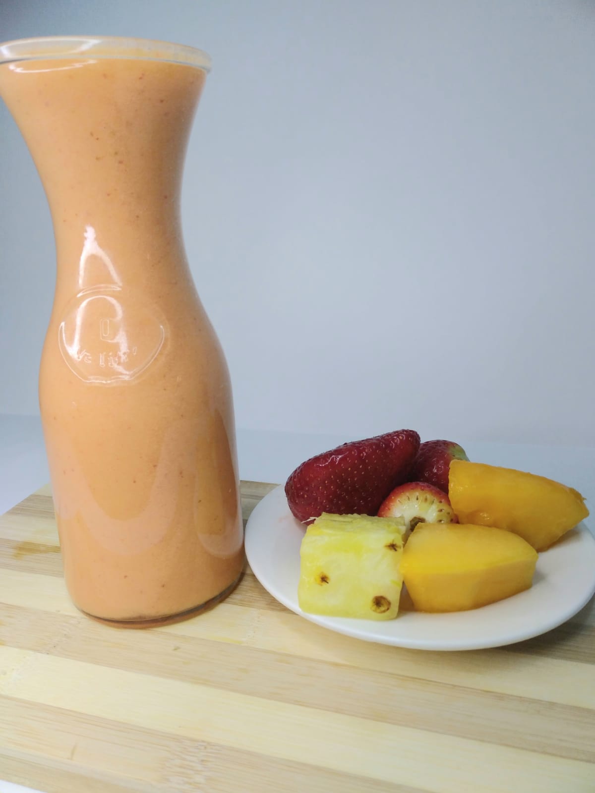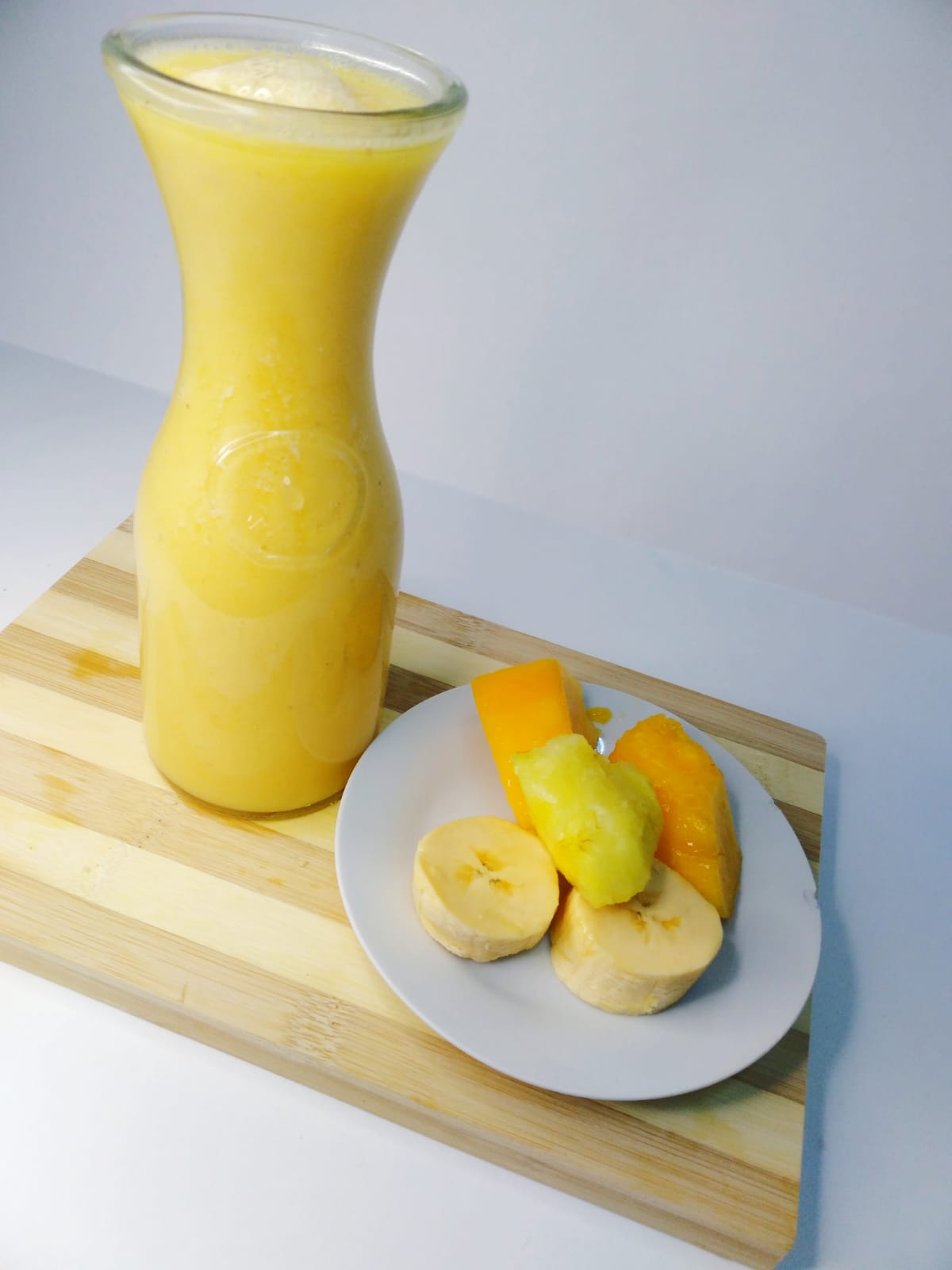 Jugo combinado de pulpa de papaya y piña , endulzado con azúcar, vaso de 20 onz.