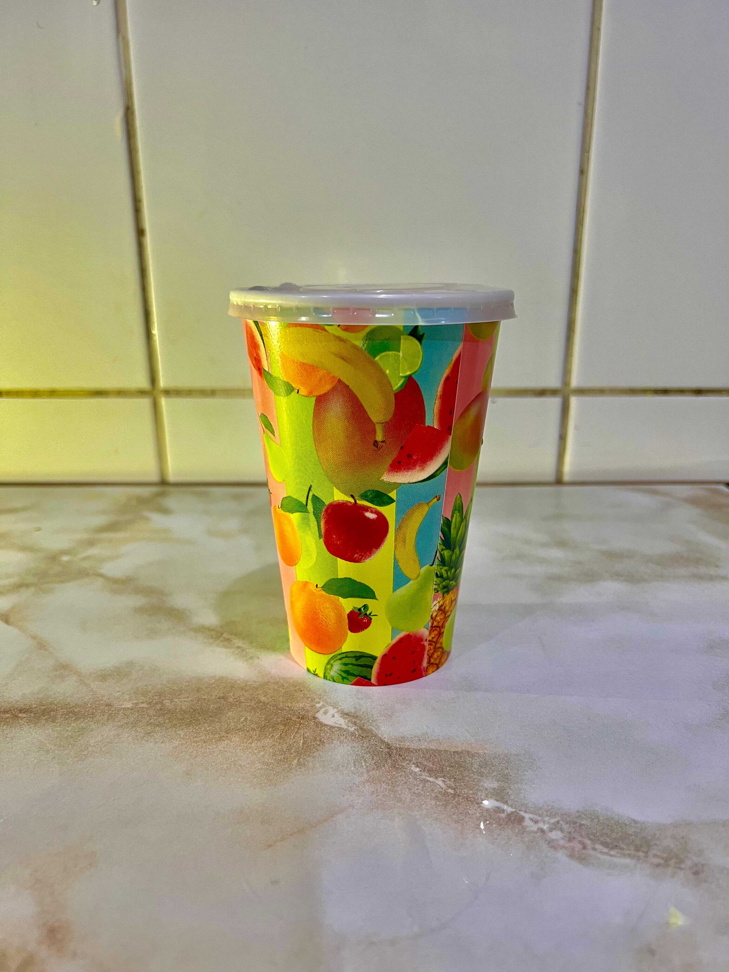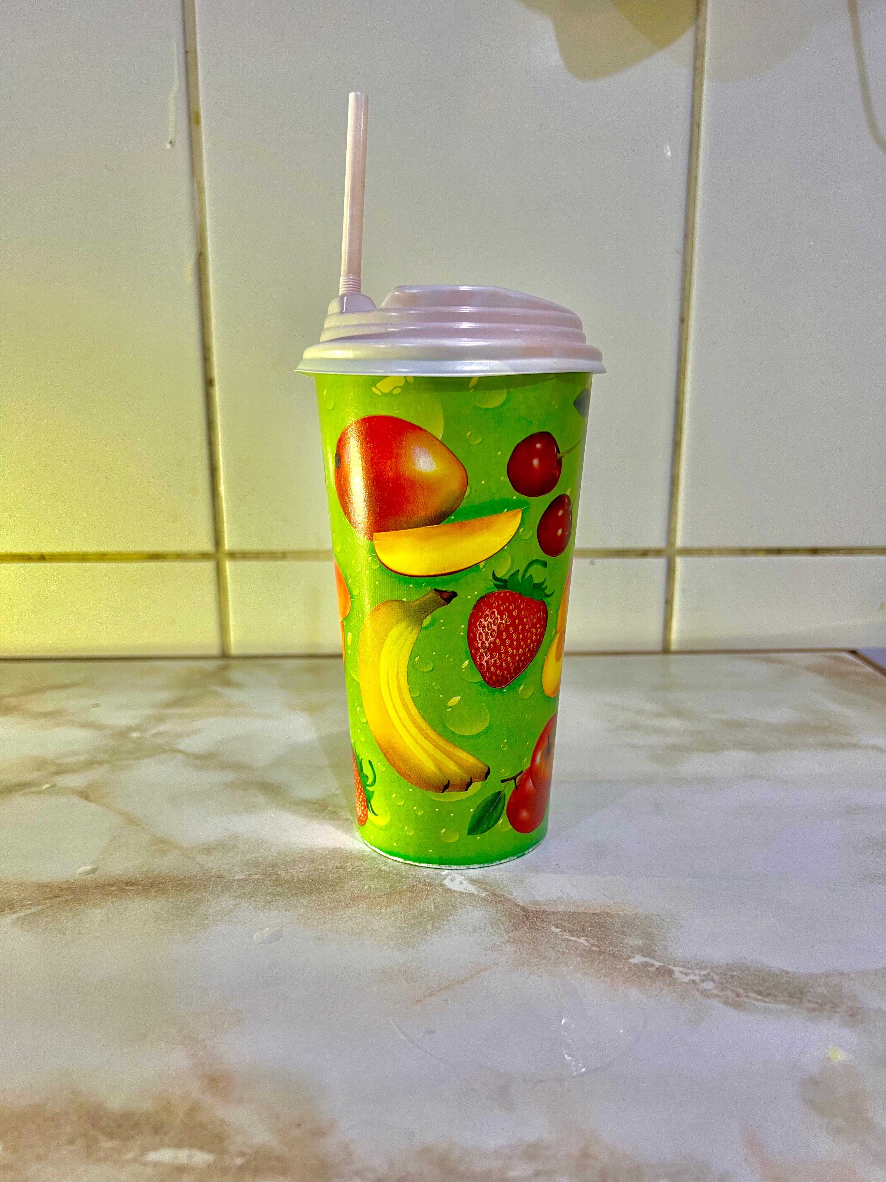 621 ml de jugo de frutas (papaya, plátano, piña, maracuyá, fresa) combinadas de alta calidad, agua y azúcar. Elige entre helado o sin helar.