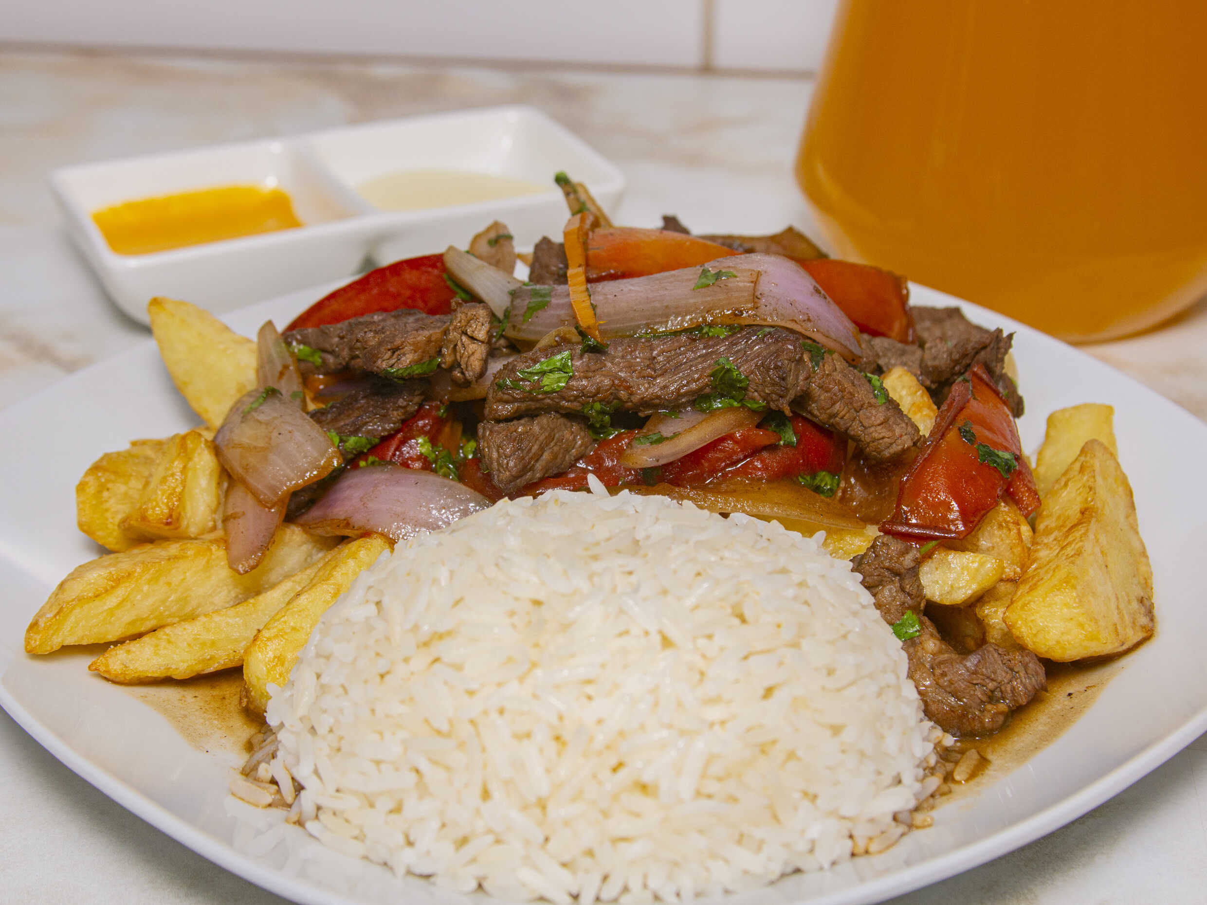 Lomo Saltado - Arroz - Papas Fritas