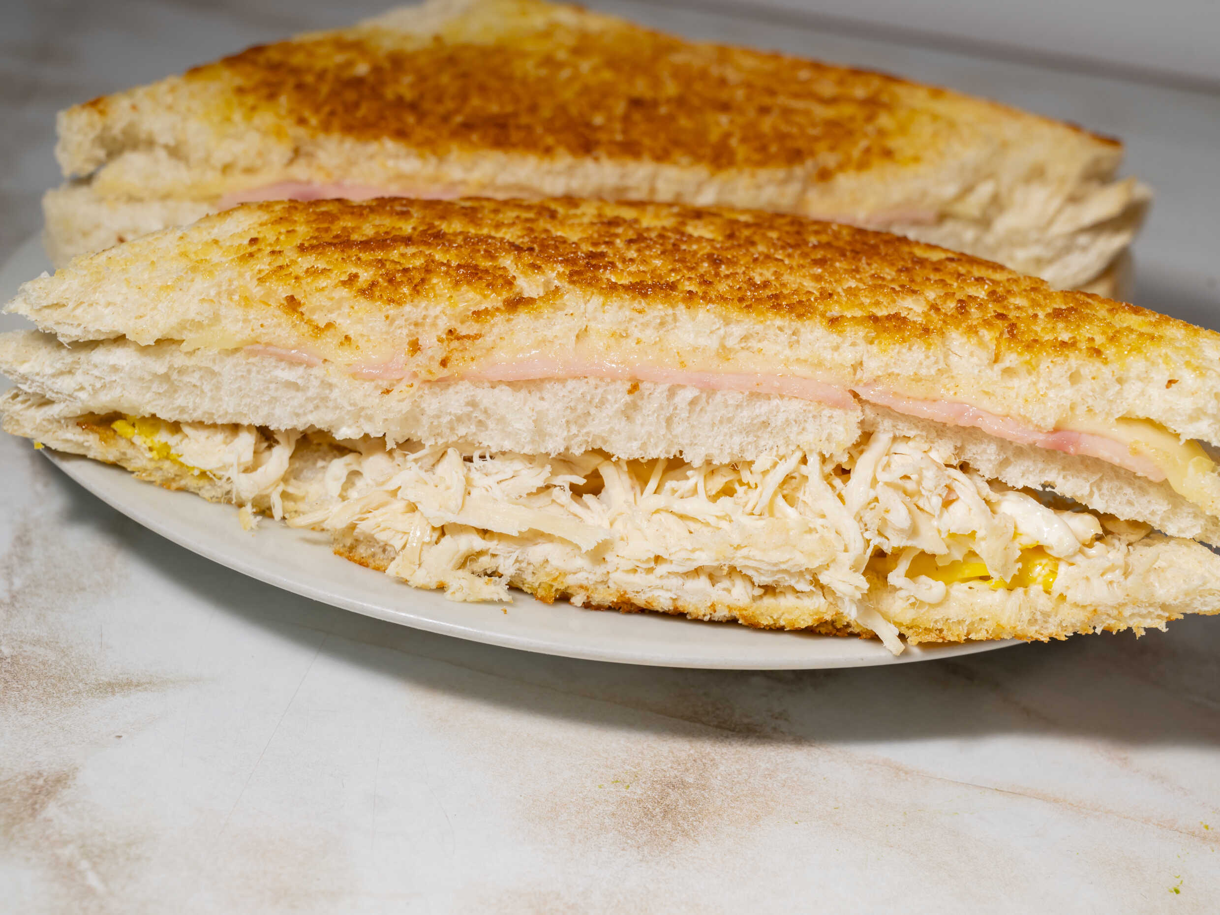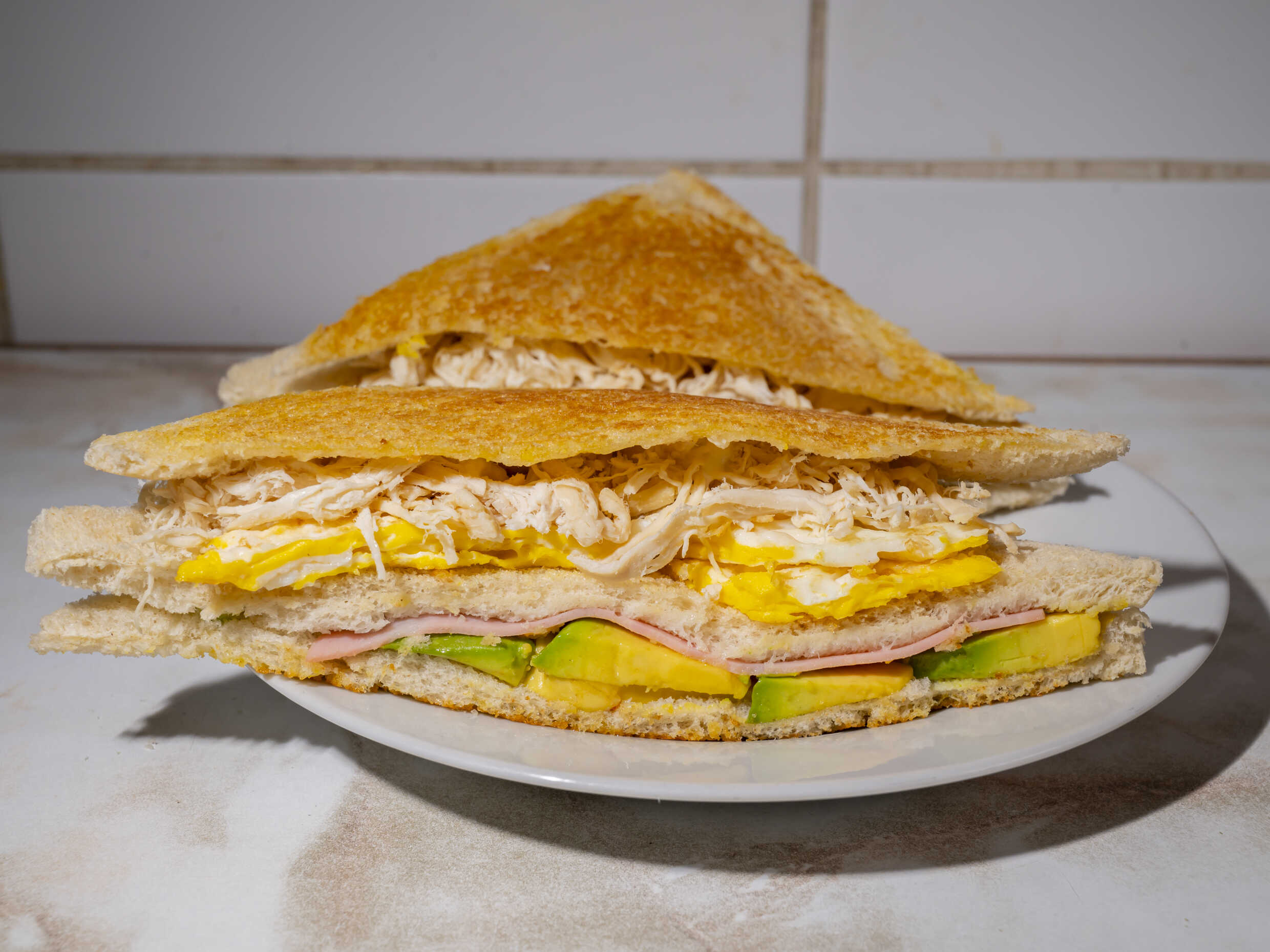 Pollo desilachado - Jamón inglés - Queso - Huevo - Mayonesa