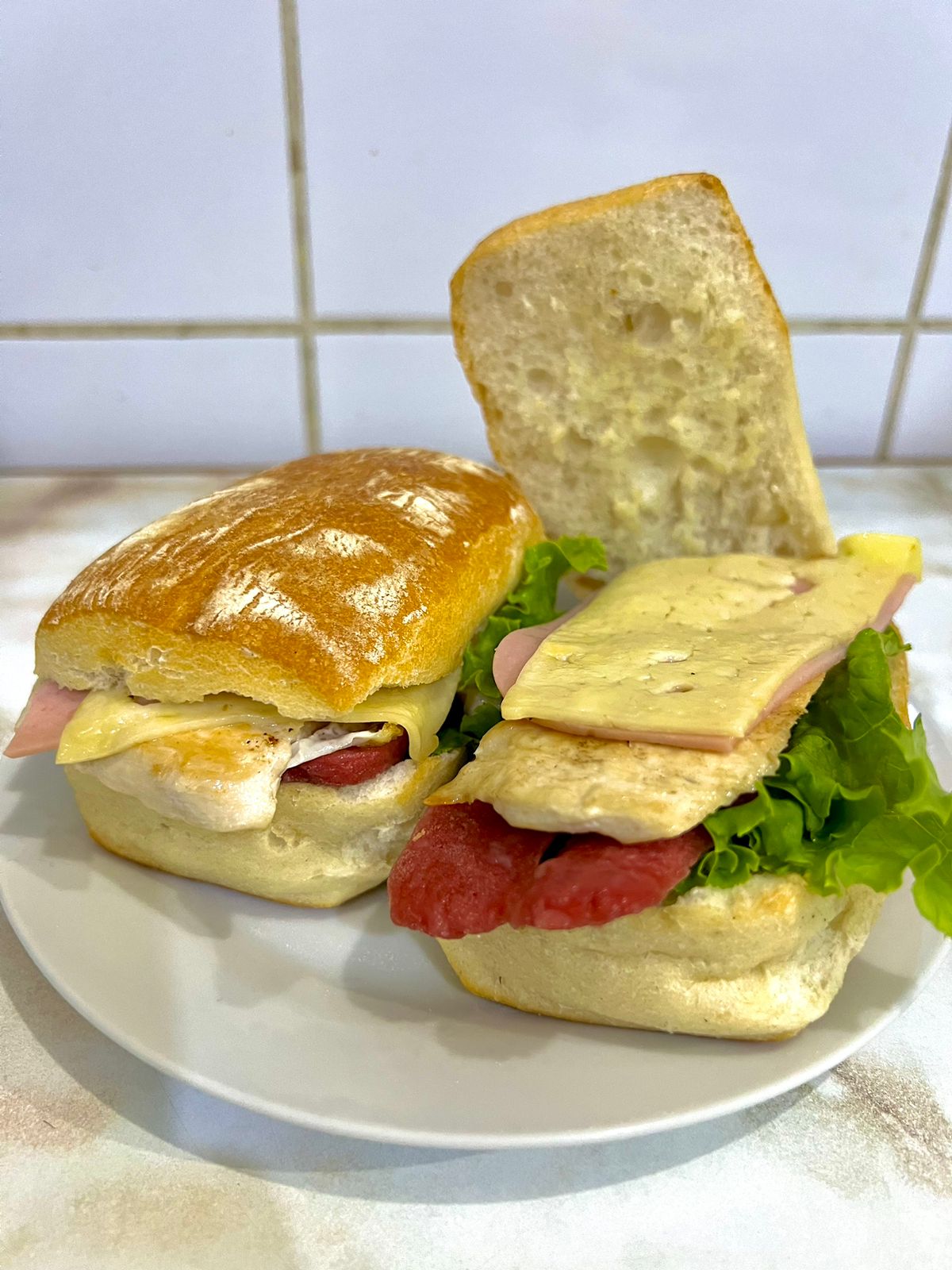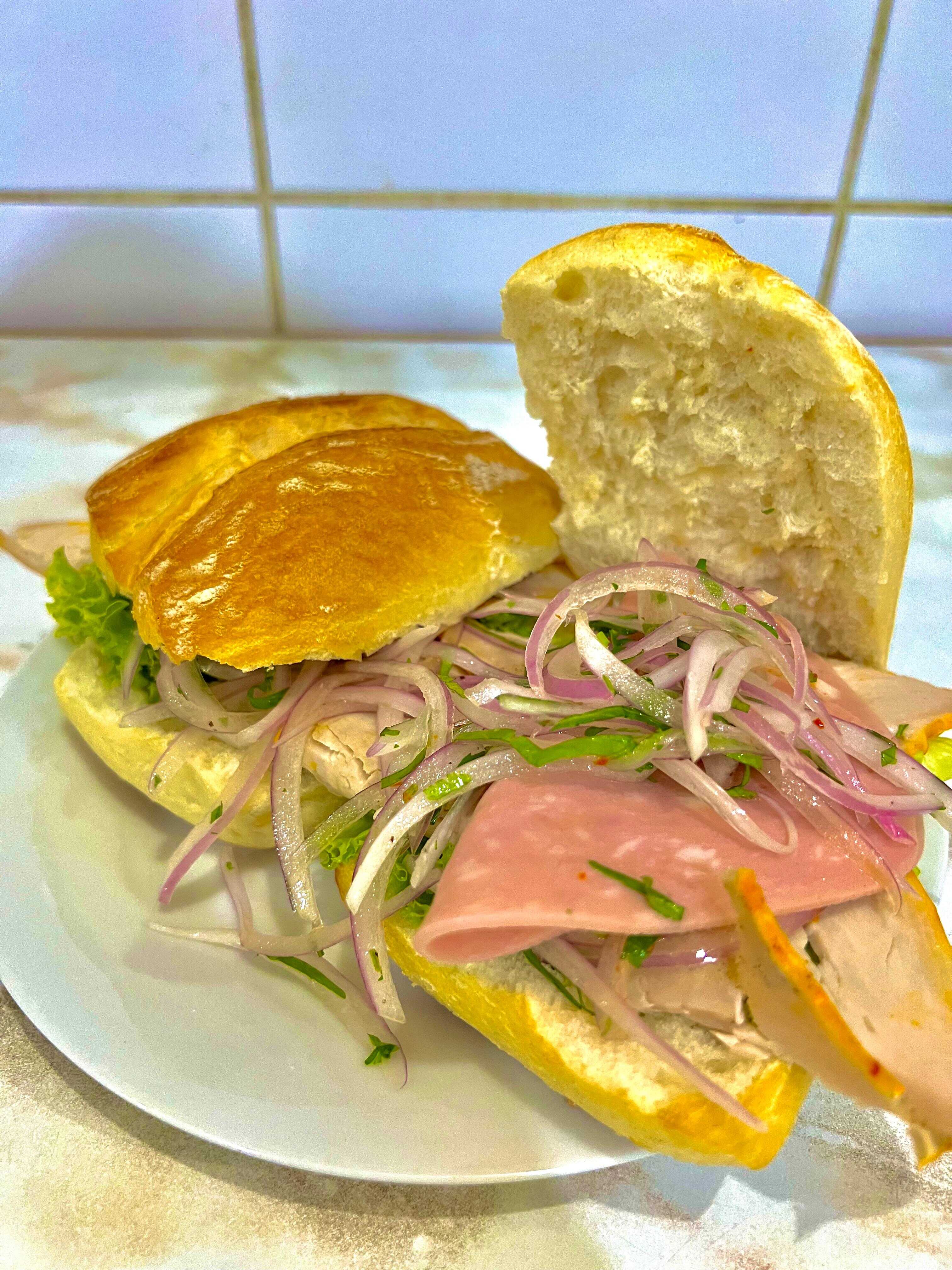 2 Panes Ciabatta - Jamón del país - Jamón Inglés - Salsa criolla