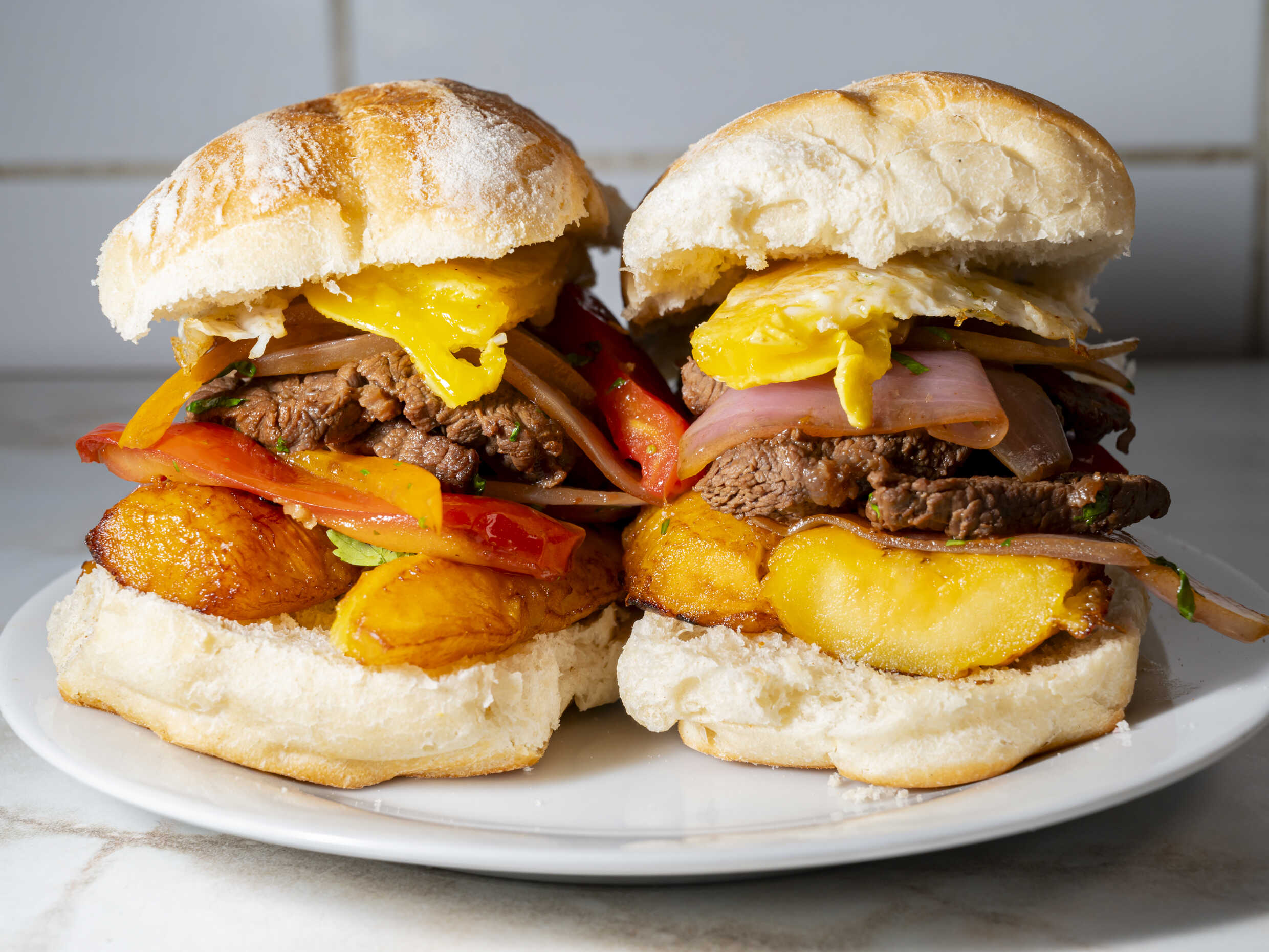 2 Panes Ciabatta - Lomo saltado - Plátano - Huevo