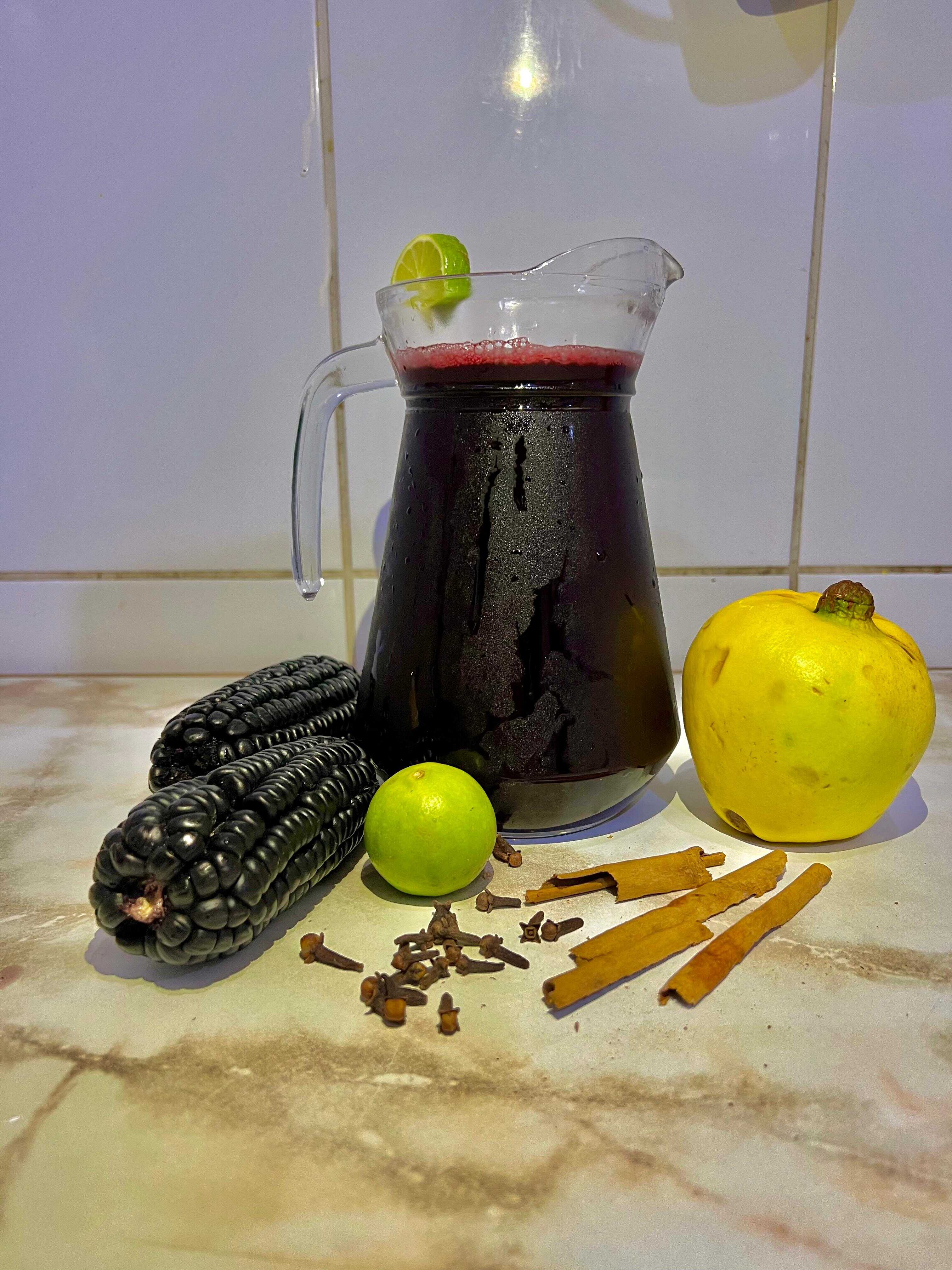 1 de refrescante y deliciosa bebida de chicha morada natural. Elige entre helada o sin helar.