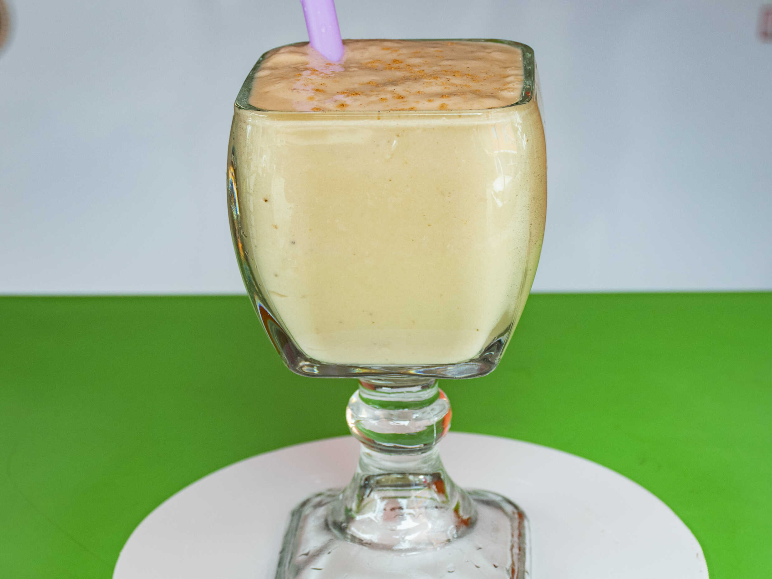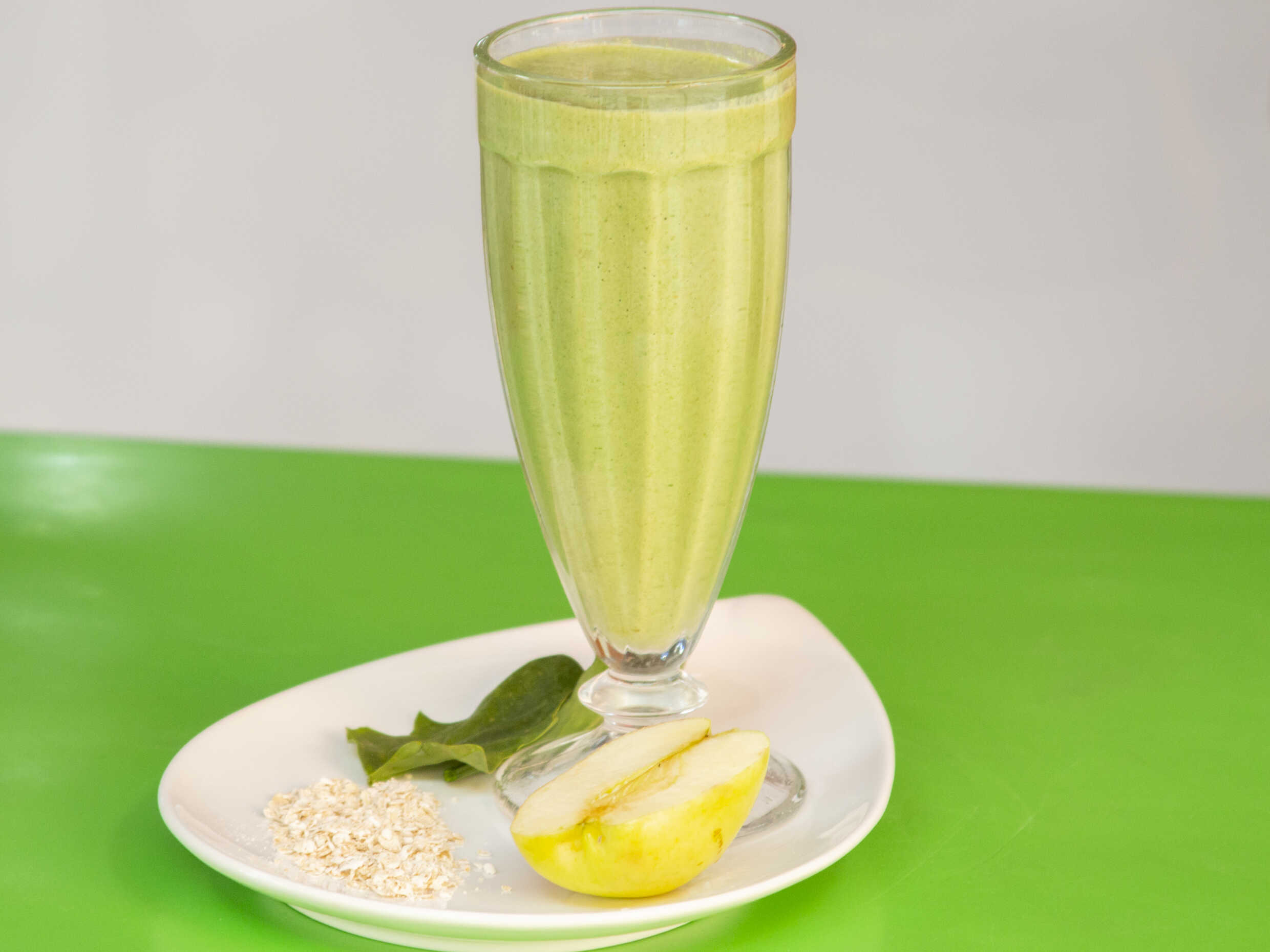 Licuado espeso de espinaca, avena, plátano, manzana y leche 12oz.